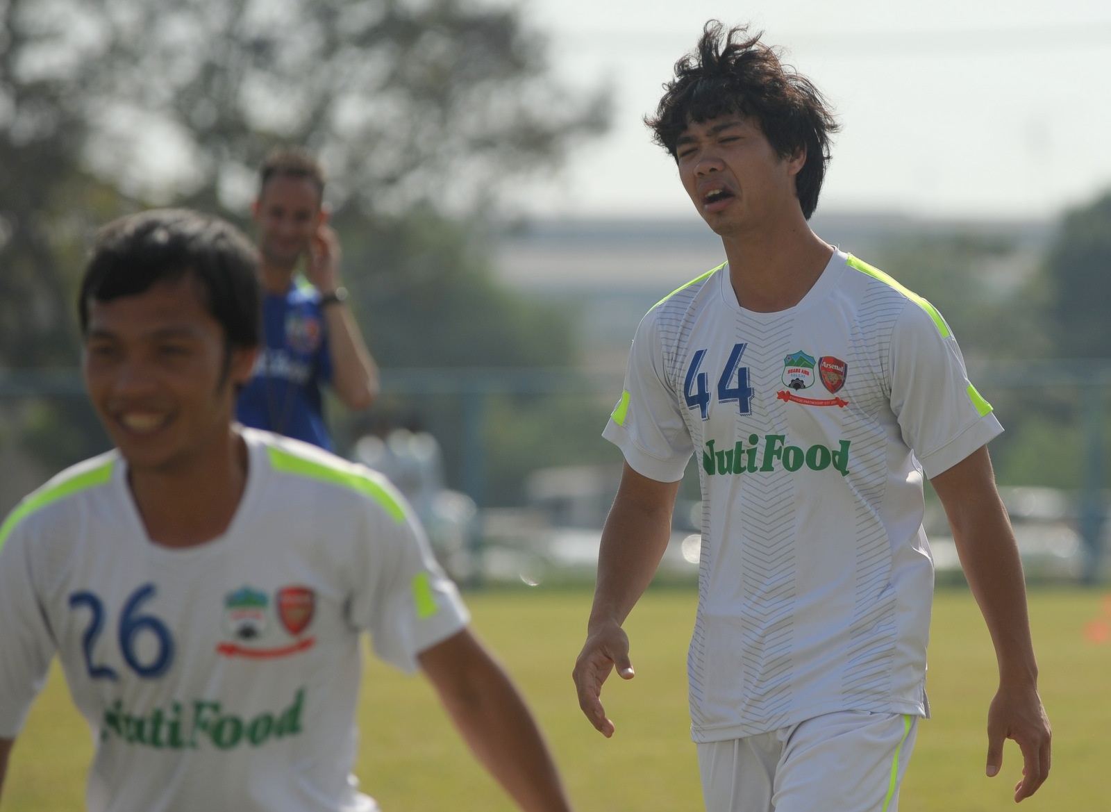 | Nụ cười tươi rói của Công Phượng trong một buổi tập của HAGL trên đất Thái Lan. |