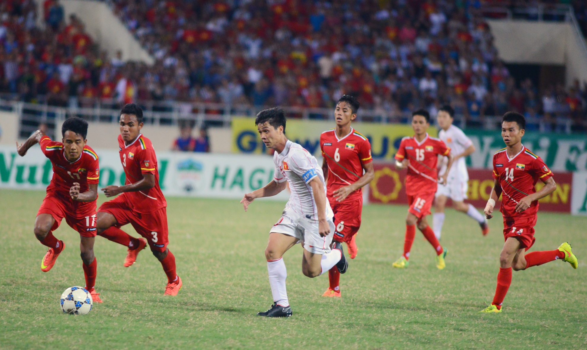 | Những pha phối hợp nhuần nhuyễn và chuẩn xác của Văn Toàn, Tuấn Anh, Văn Long, Xuân Trường và Công Phượng liên tục đặt khung thành của U19 Myanmar vào tình trạng báo động cao. |