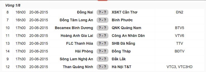 | Lịch thi đấu cụ thể vòng 1/8 Cúp quốc gia 2015. |