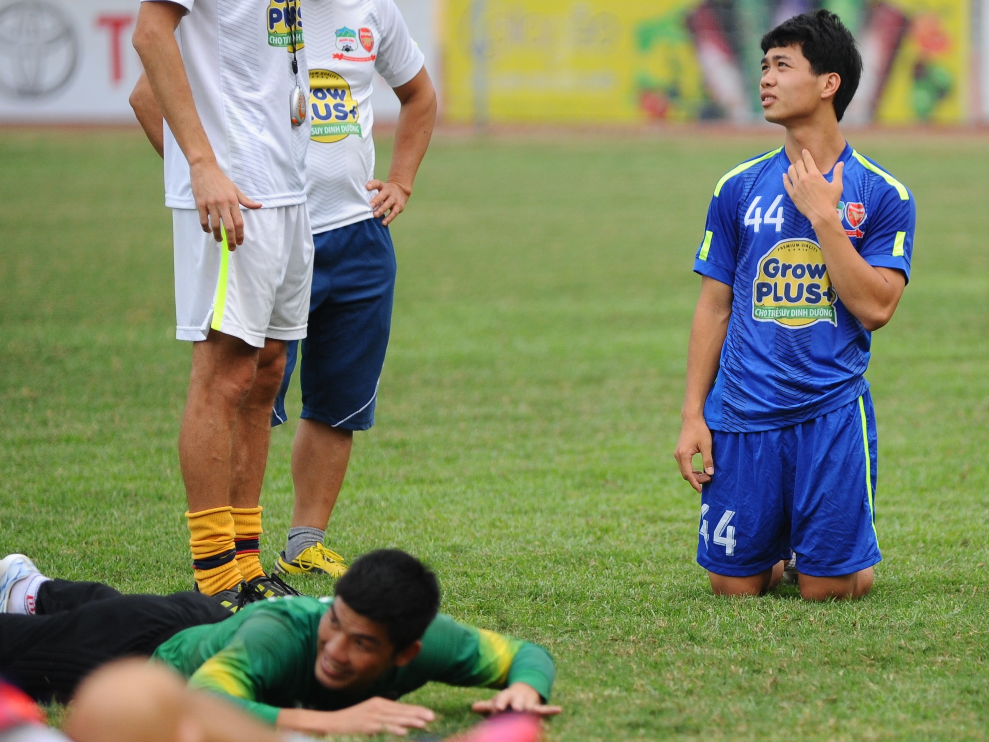 16h chiều 24/4, cầu thủ HAGL có buổi tập kéo dài 1 tiếng để làm quen mặt cỏ sân Hàng Đẫy, nhằm chuẩn bị cho trận đấu gặp Hà Nội T&T trong khuôn khổ vòng 11 V.League 2015.