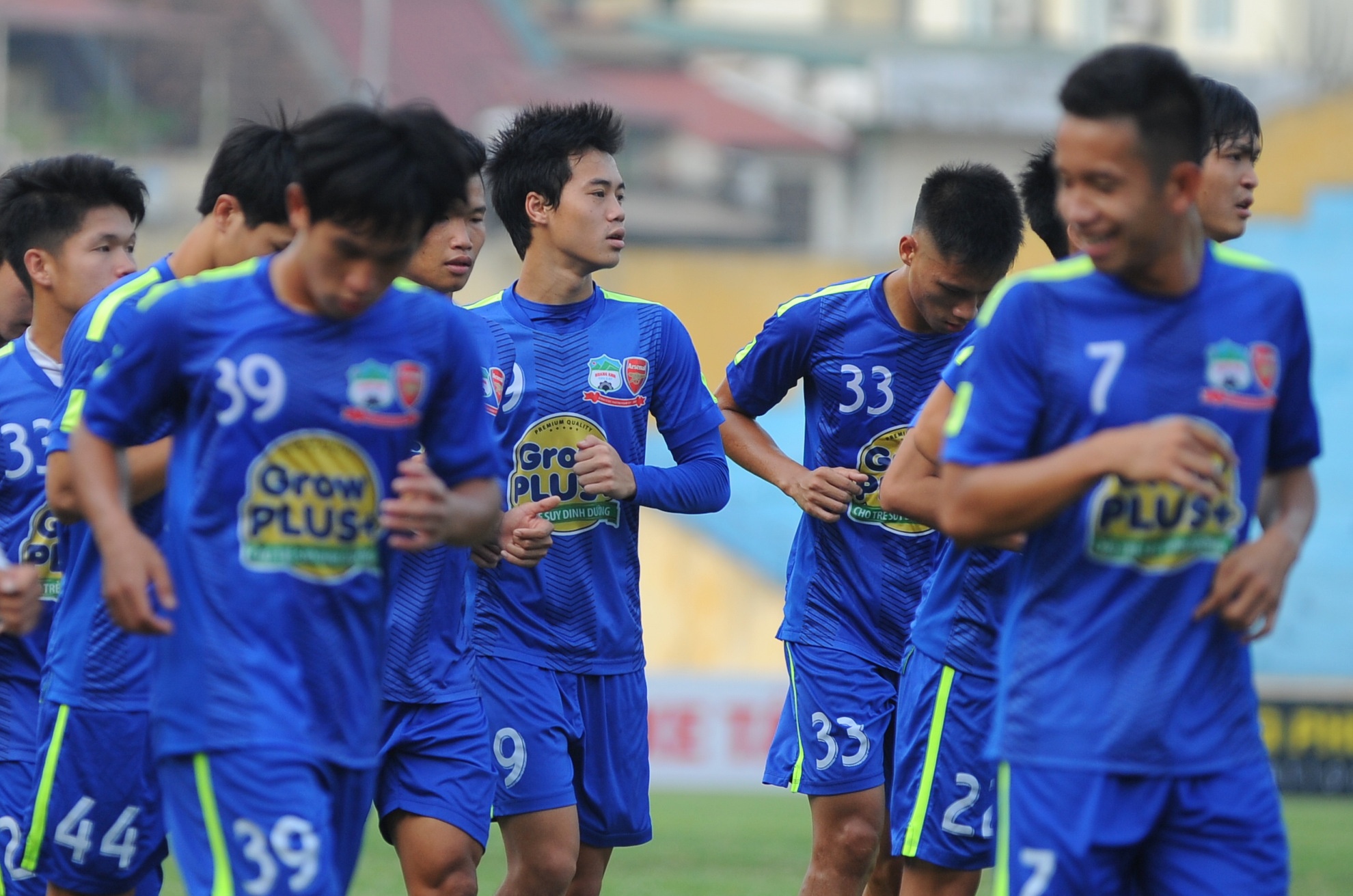 | Các cầu thủ HAGL chạy nhẹ trước khi kết thúc buổi tập chiều 24/4. |