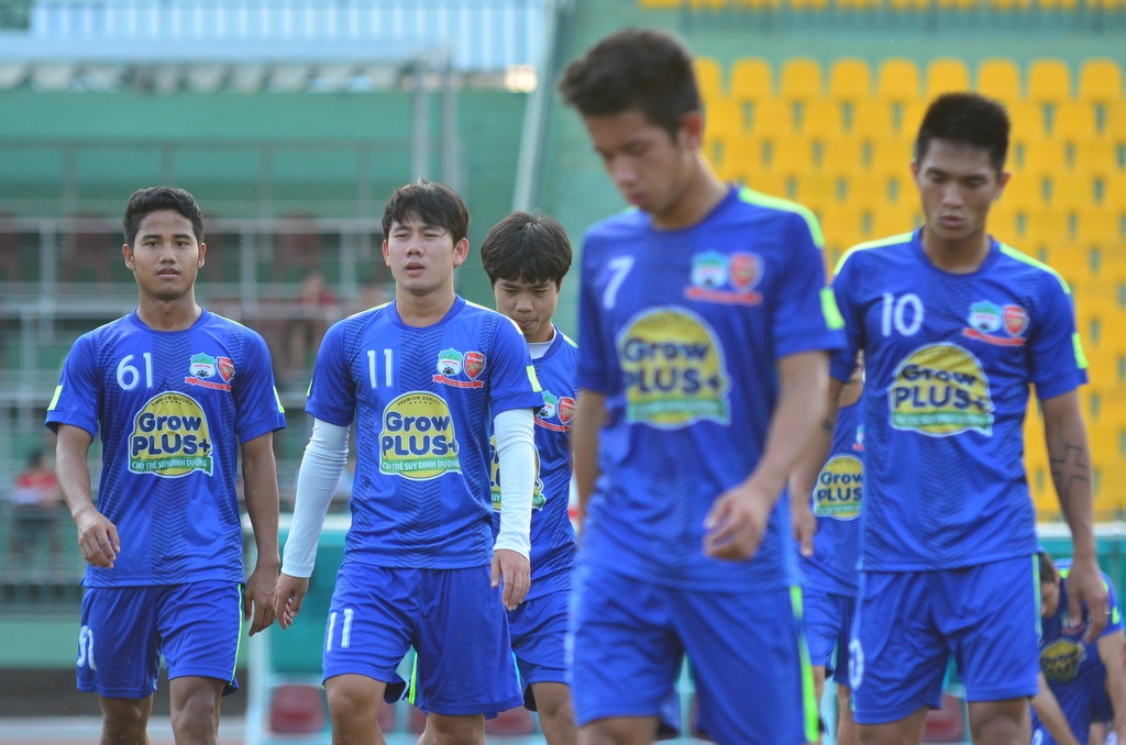 | Không như vẻ ủ dột, căng thẳng trước trận gặp Than Quảng Ninh, Công Phượng vui... như đứa trẻ khi trở lại Cần Thơ. Trong ảnh, ngôi sao của HAGL tìm cách để gạt chân đồng đội Vũ Văn Thanh trong một tình huống di chuyển trên sân. |