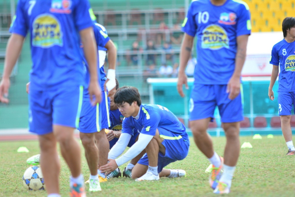 Công Phượng tinh nghịch gạt chân đồng đội trên sân tập