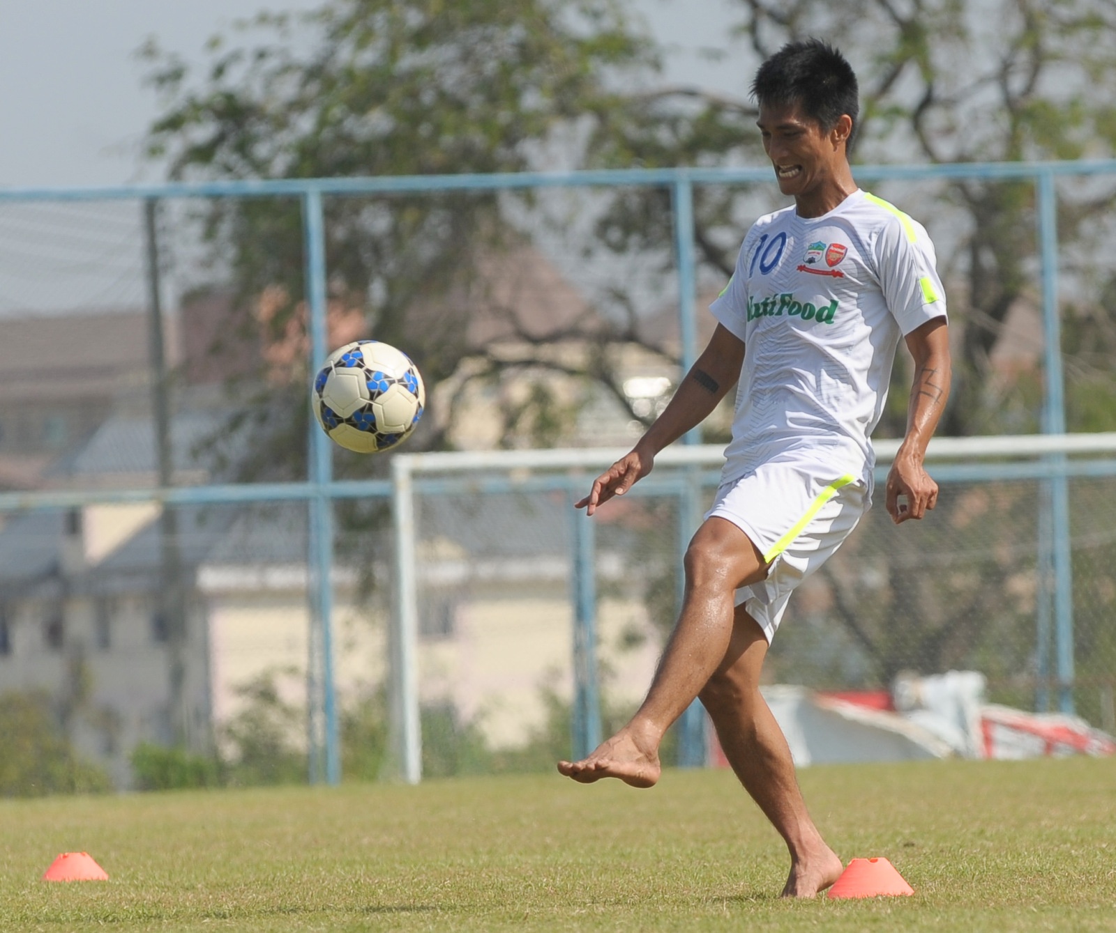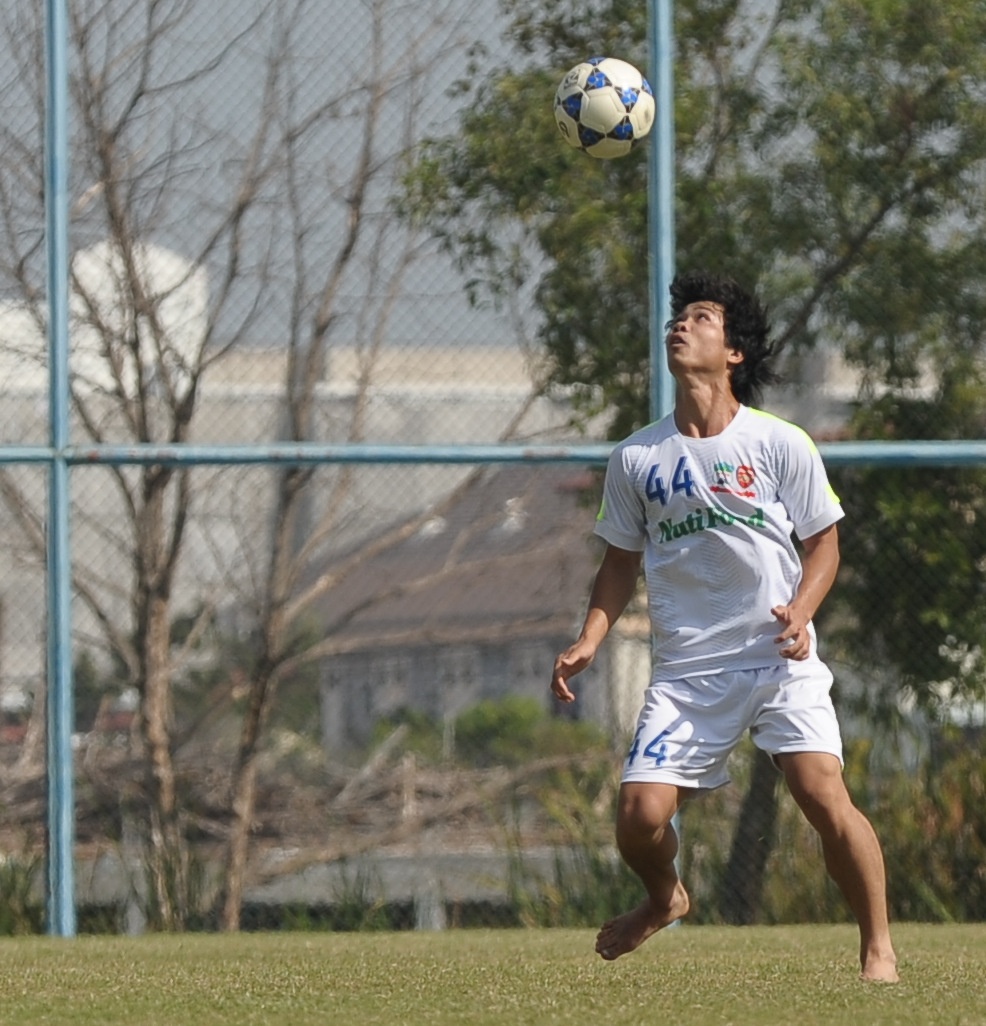 | Tiền vệ U23 cũng thể hiện kỹ thuật khống chế bóng khi không mang giày rất tốt. |