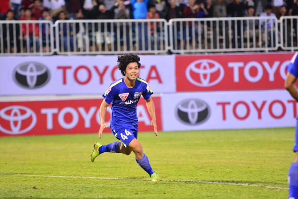| Công Phượng thi đấu thăng hoa và lập cú đúp trong trận đấu đâu tiên tại V.League 2015. Ảnh: Lê Ngọc |