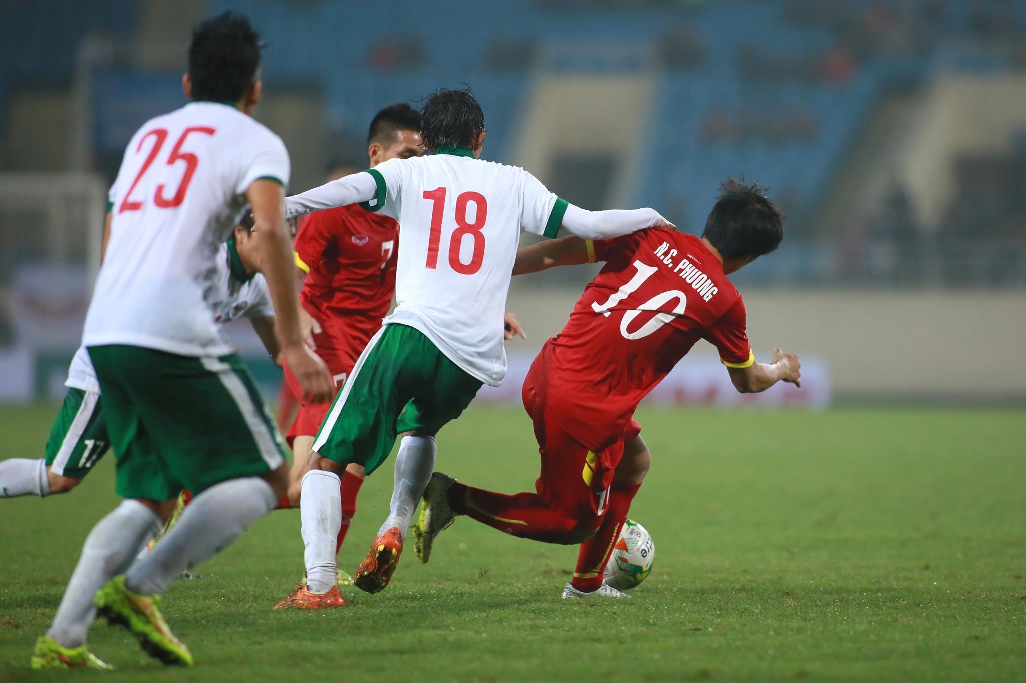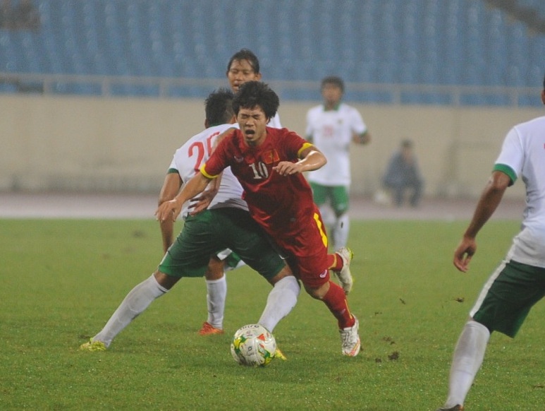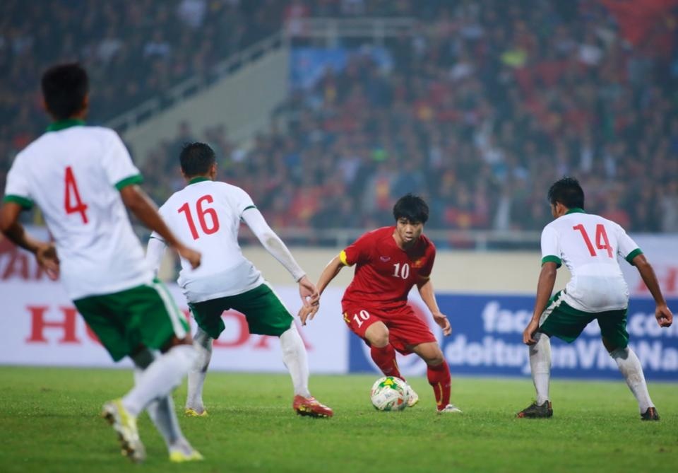 | Hàng phòng ngự Indonesia không ít lần buộc phải phạm lỗi với Công Phượng. |