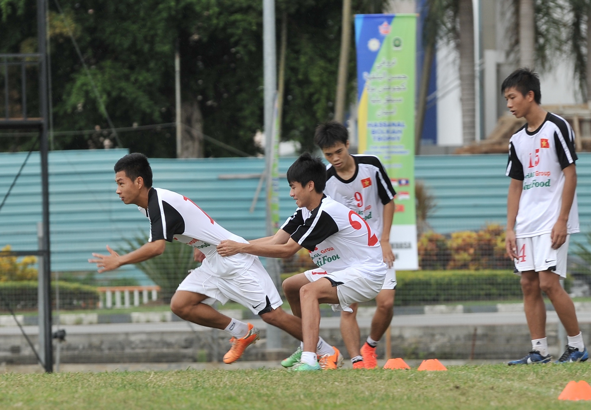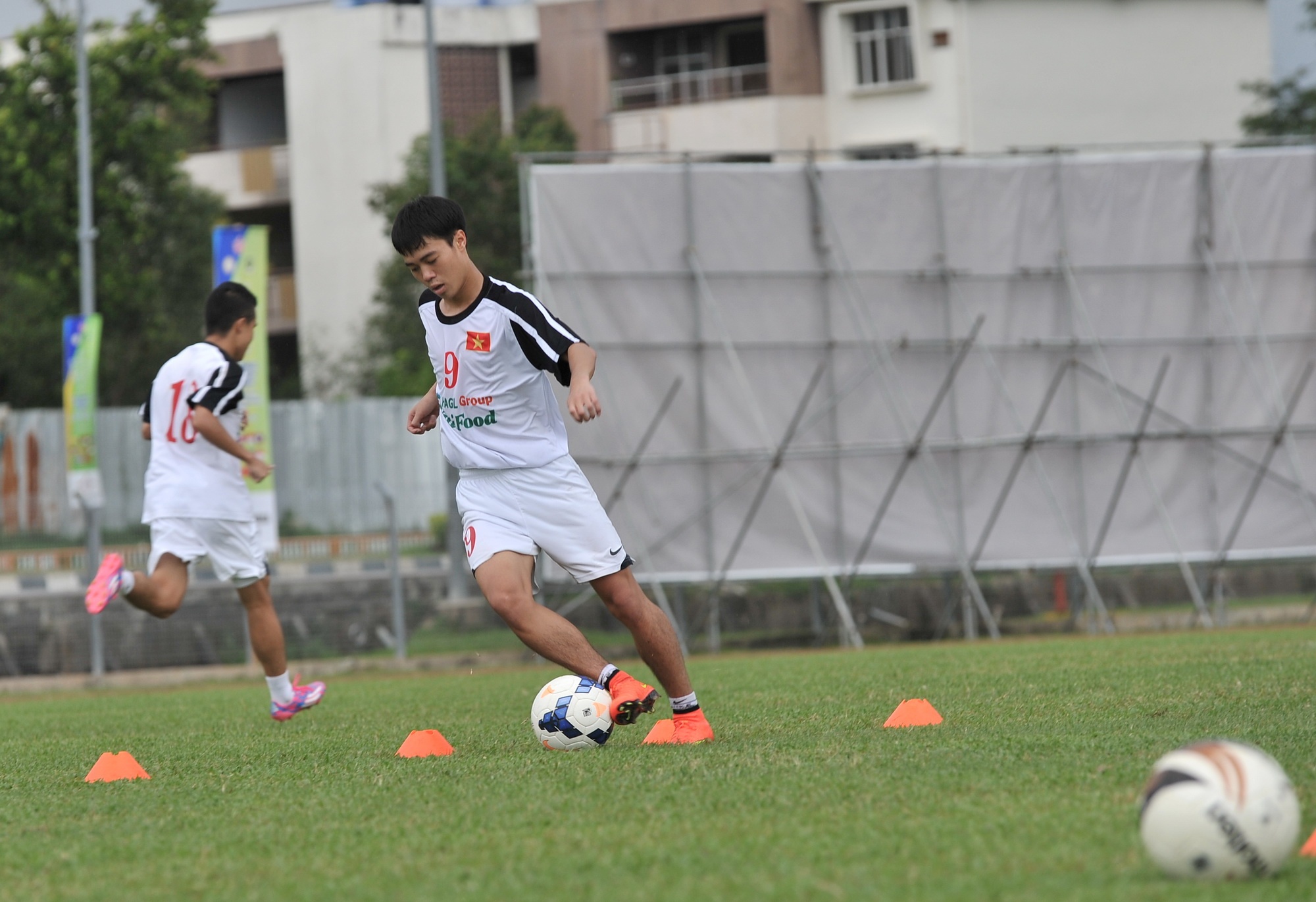 | Công Phượng bị đau bắp chân phải, Quang Hải chấn thương sau gối, Xuân Trường đau cổ chân đều phải ngồi ngoài chườm đá trong suốt buổi tập chiều nay của U19 Việt Nam. |