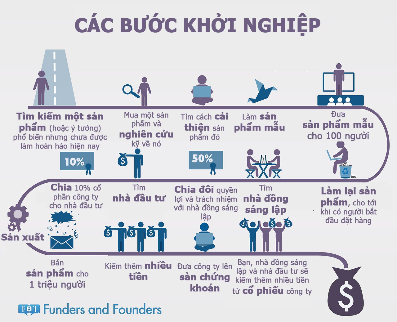Từ tìm kiếm ý tưởng cho tới sản xuất và đưa công ty lên sàn chứng khoán, đây là những bước cơ bản để khởi nghiệp kinh doanh.