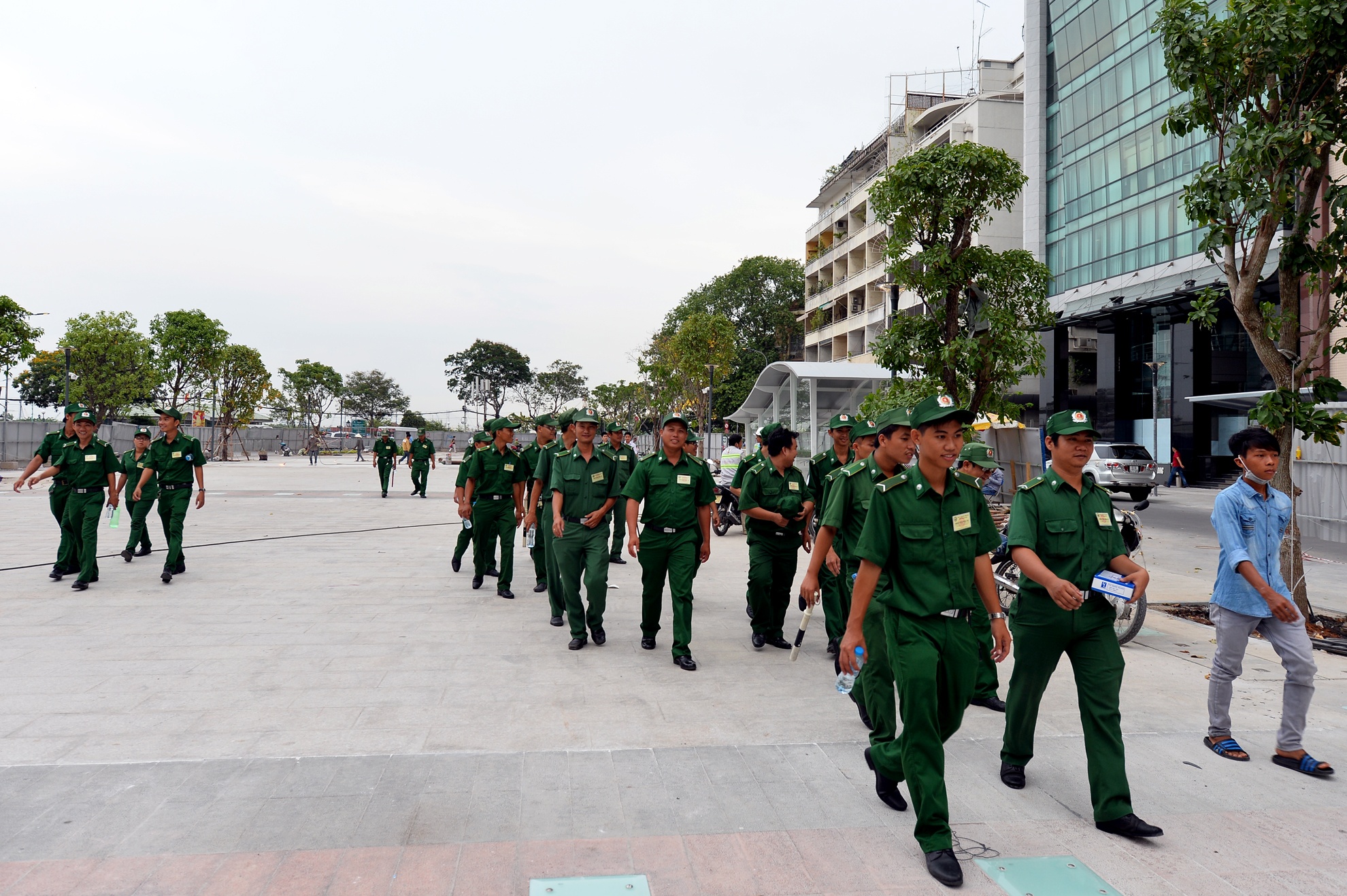 | Lực lượng bảo vệ, an ninh đổ bộ tập dượt chuẩn bị cho ngày kỷ niệm trọng đại. |
