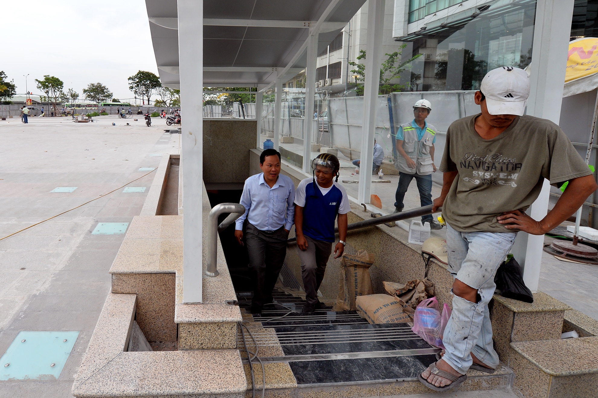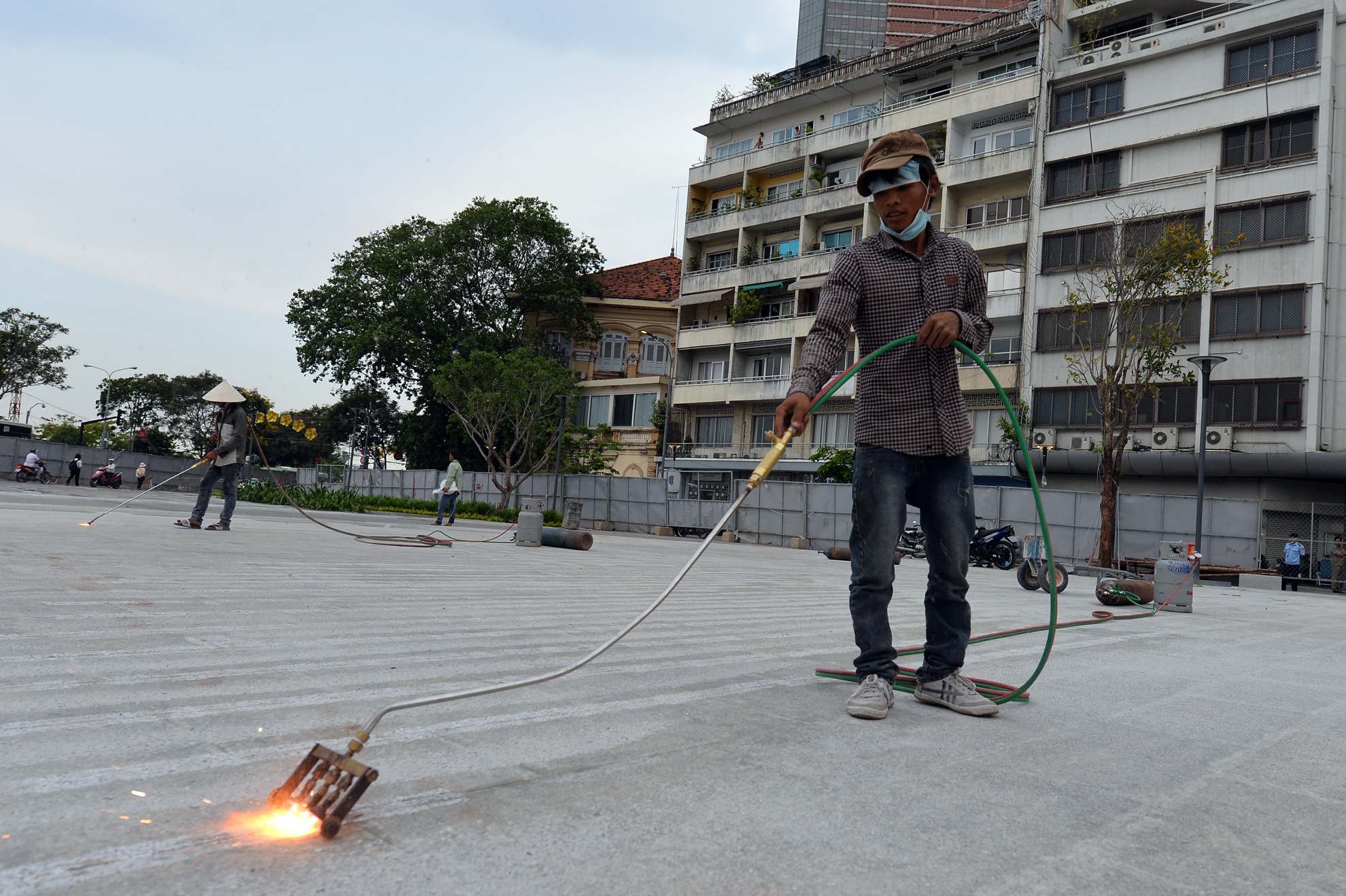 | Quảng trường đi bộ trên đường Nguyễn Huệ (quận 1, TP HCM) đang trong giai đoạn hoàn thiện để kịp khánh thành vào ngày 30/4 nhân dịp kỷ niệm 40 năm giải phóng miền Nam, thống nhất đất nước. |