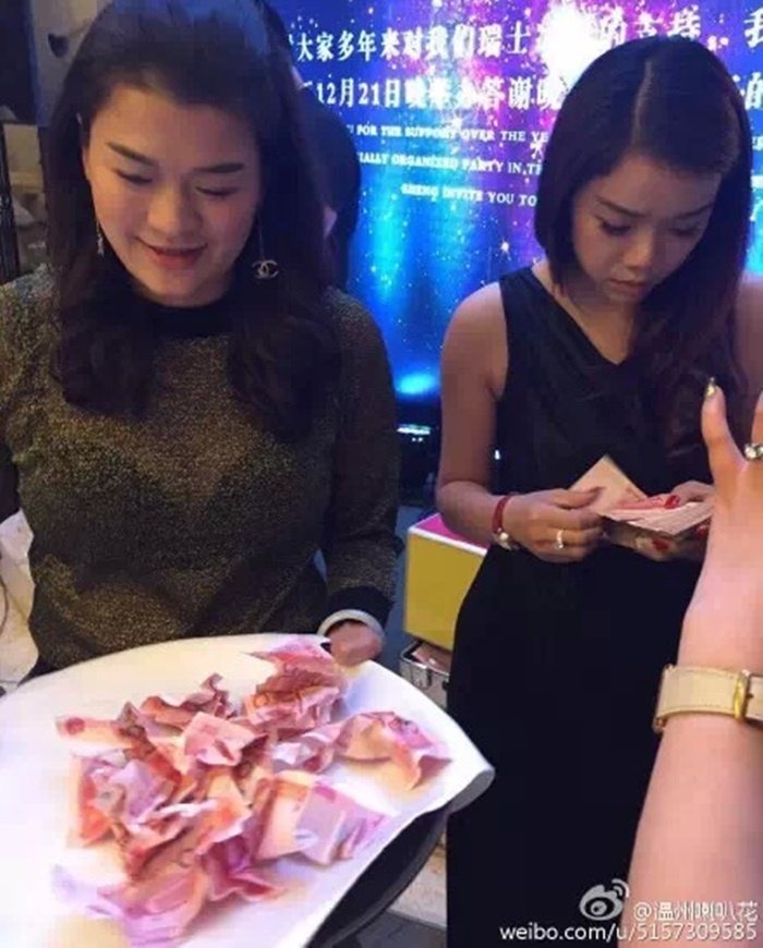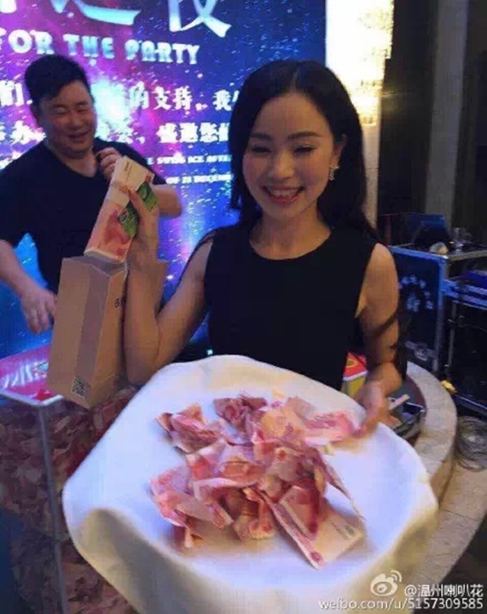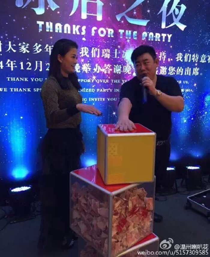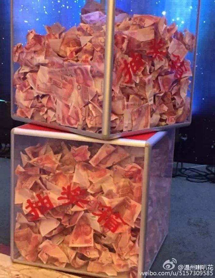 Một công ty ở Trung Quốc đã hào phóng để nhân viên xuất sắc bốc tiền thưởng trong thùng tại buổi tổng kết năm.