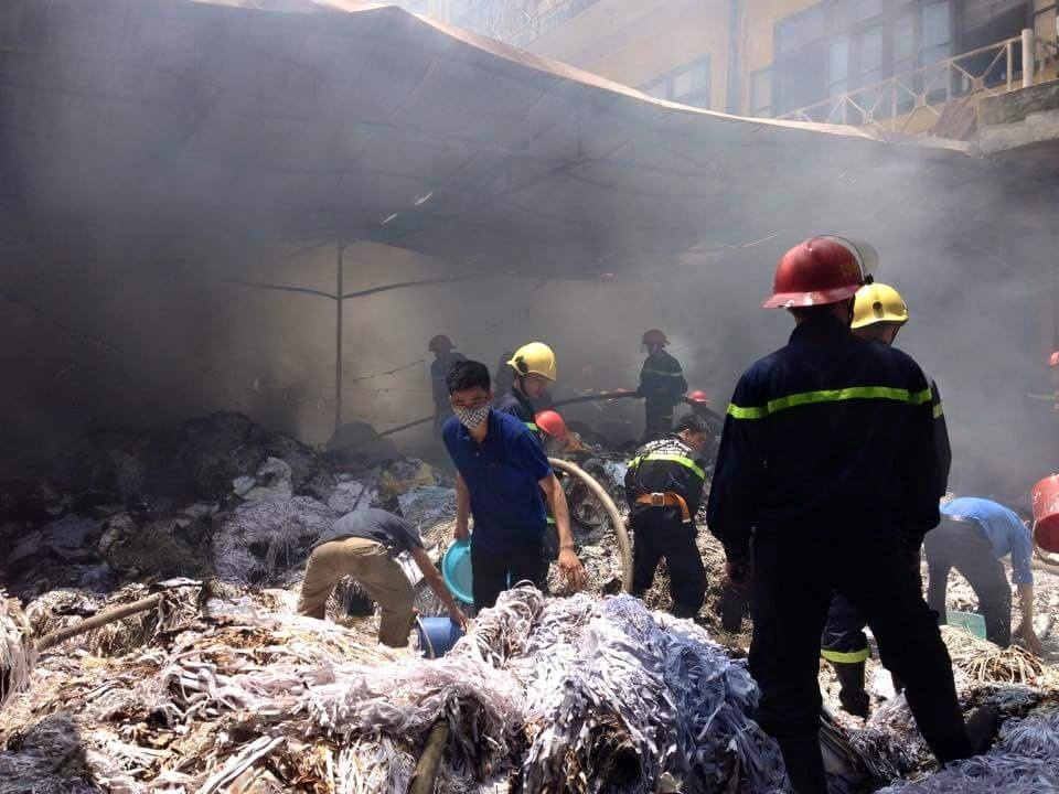 | Theo anh Sơn, vị trí xảy ra sự cố nằm sâu bên trong, cách mặt đường khoảng 50 m. Lực lượng cảnh sát PCCC chỉ có thể đưa 2 xe vào trong và dùng vòi rồng dập lửa, những xe khác tiếp nước từ xa. Một số công nhân viên công ty hỗ trợ đưa xe máy rời khỏi điểm trông giữ gần đó ra ngoài. Đồng thời, phối hợp với lực lượng chức năng tìm cách ngăn chặn ngọn lửa lan rộng. |