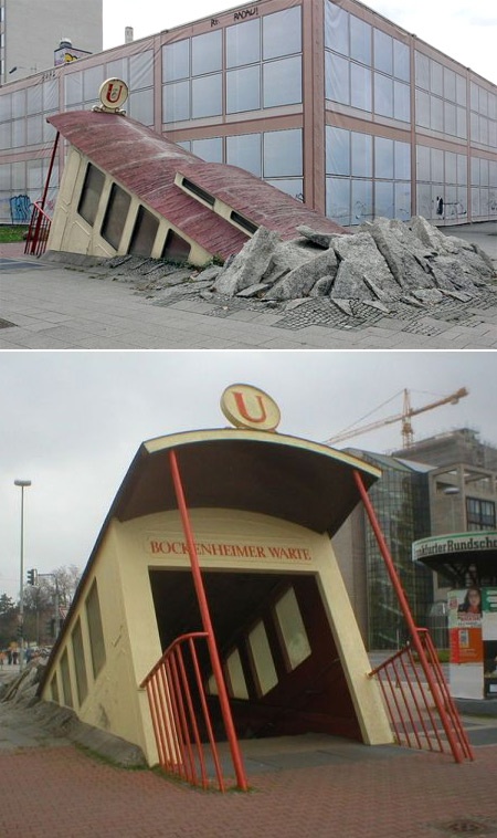 | Lối vào ga tàu điện ngầm Bockenheimer Warte ở Frankfurt, Đức. Công trình này được thiết kế vào năm 1986. |