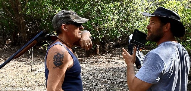 Mick và Dean (trái) đang sử dụng mục tiêu giả để săn cá sấu. |