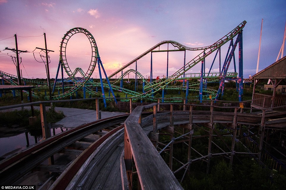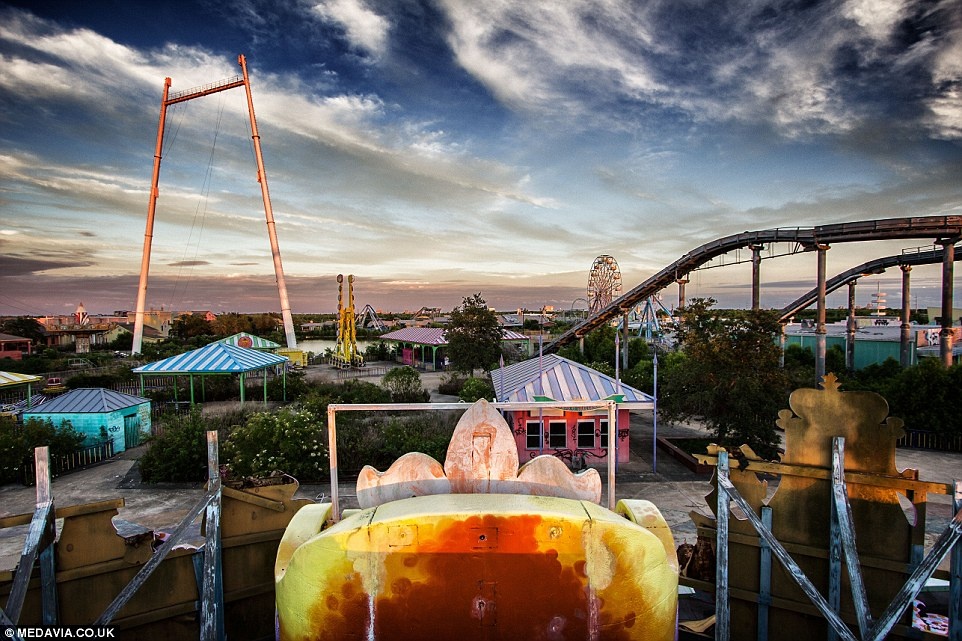 Chiếc đu quay khổng lồ đứng trơ trọi, bánh xe, tàu lượn hoen gỉ sau gần 10 năm bị bỏ hoang tại một công viên ở Mỹ.