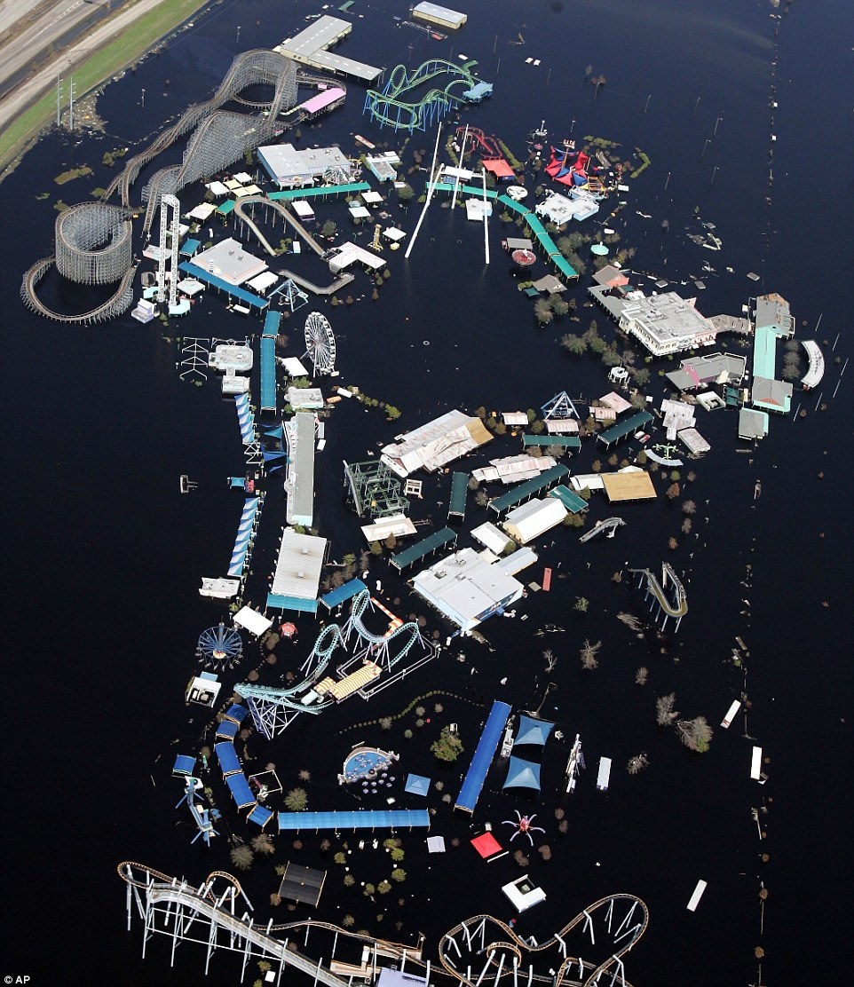 Khu vui chơi giải trí Six Flags, thành phố News Orleans ở bang Louisiana, chìm trong nước lũ và đóng cửa sau khi siêu bão Katrina đổ bộ vào bờ biển phía nam nước Mỹ năm 2005.