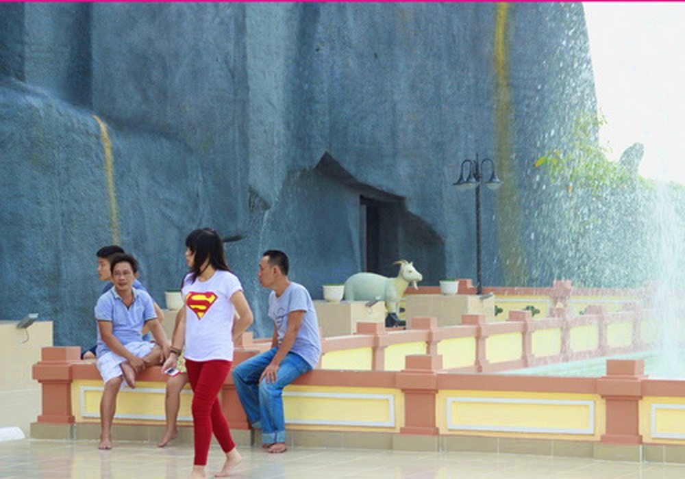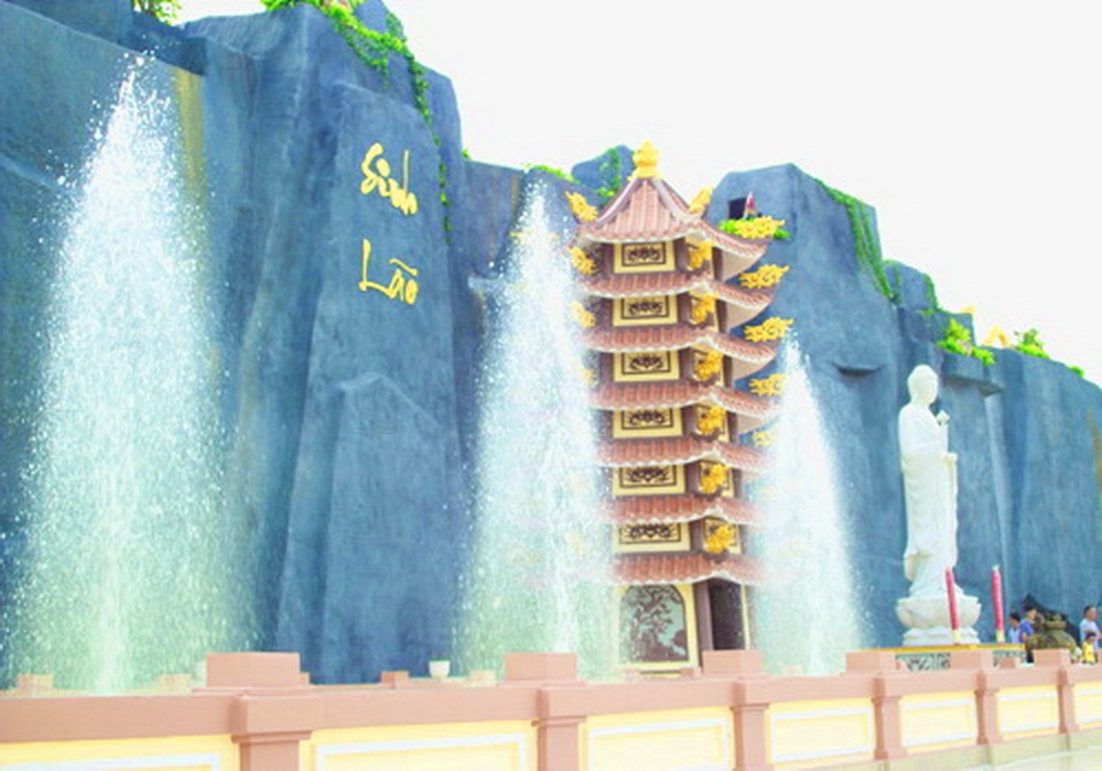 | Trung tâm của công viên là núi nhân tạo với tháp 7 tầng, các vòi nước hai bên tạo điểm nhấn. |