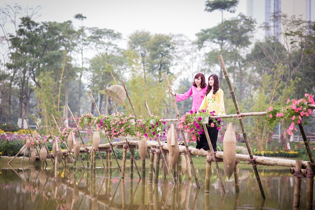 | Công viên được thiết kế nhằm tạo nên bức tranh thiên nhiên đẹp đẽ về cuộc sống con người Việt Nam trong ngày Tết. |