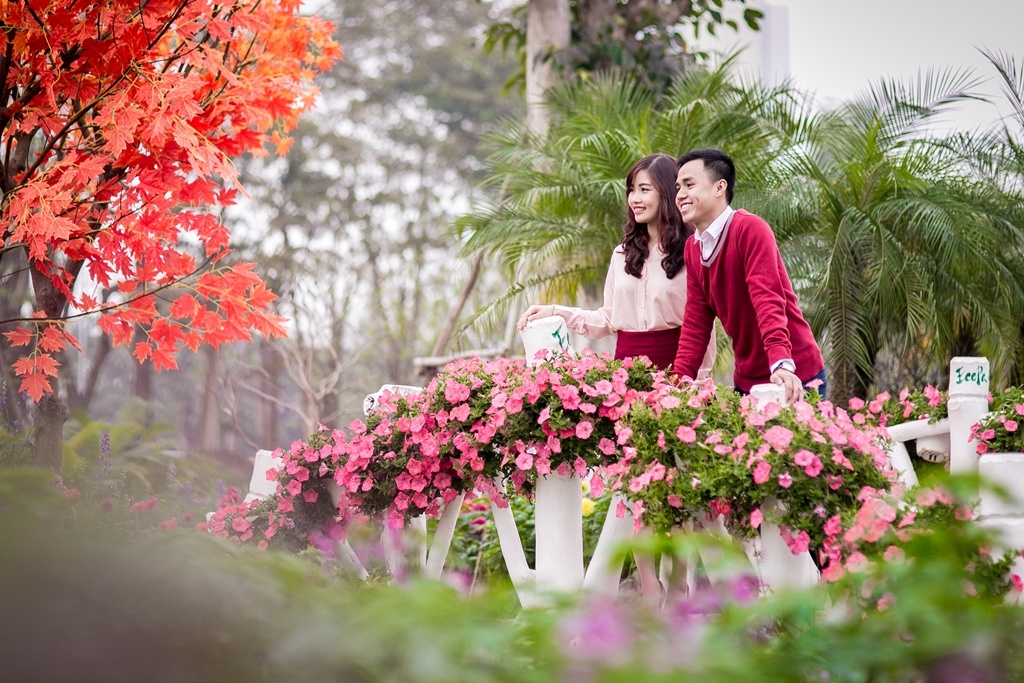 | Các bạn trẻ yêu thích phong cách hiện đại có thể tạo dáng dưới tán cây phong lá đỏ rực... |