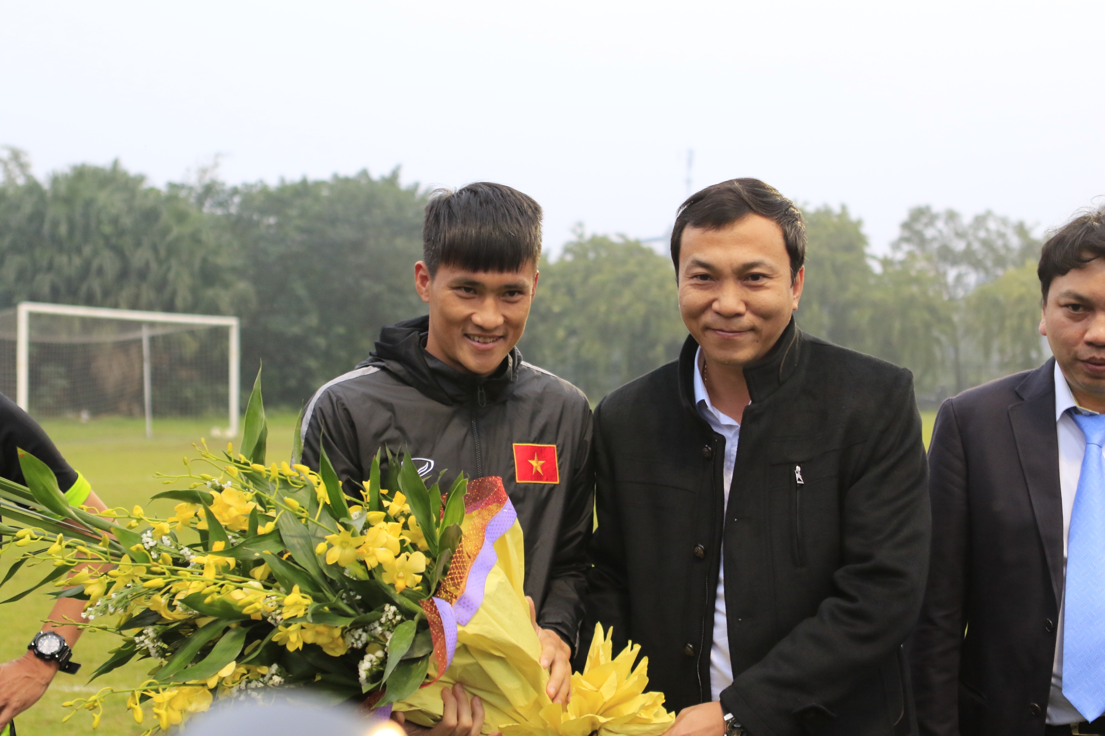 | Trước đó, Lê Công Vinh nhận được bó hoa tươi và lời chúc mừng đặc biệt từ lãnh đạo VFF. Các đồng đội cũng đã vô tay không ngớt và hát bài "Chúc mừng sinh nhật" tặng tiền đạo mang áo số 9 của ĐTVN. |
