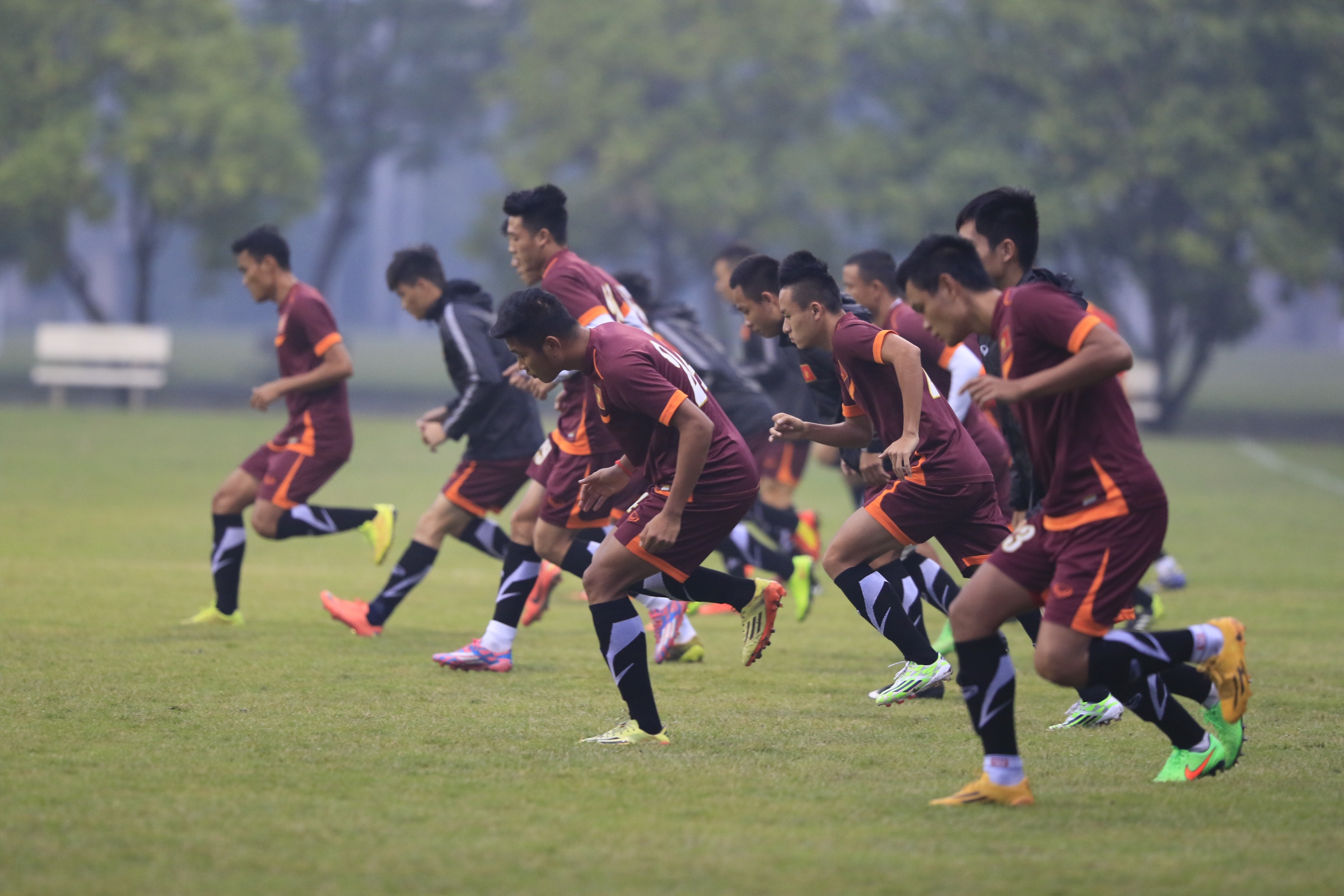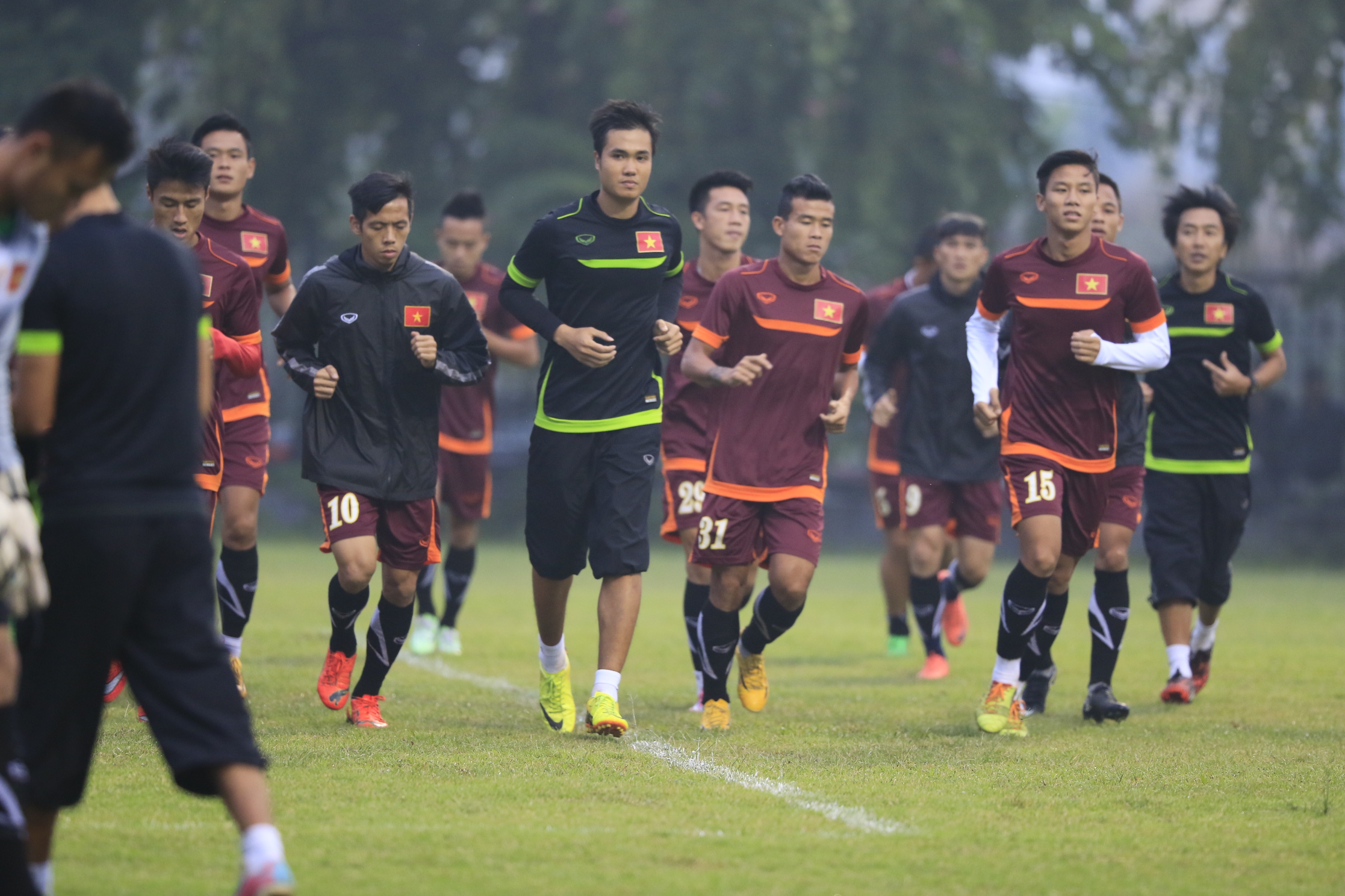 | Sau đó các học trò của HLV Miura bước vào màn chạy khởi động trước buổi tập. |