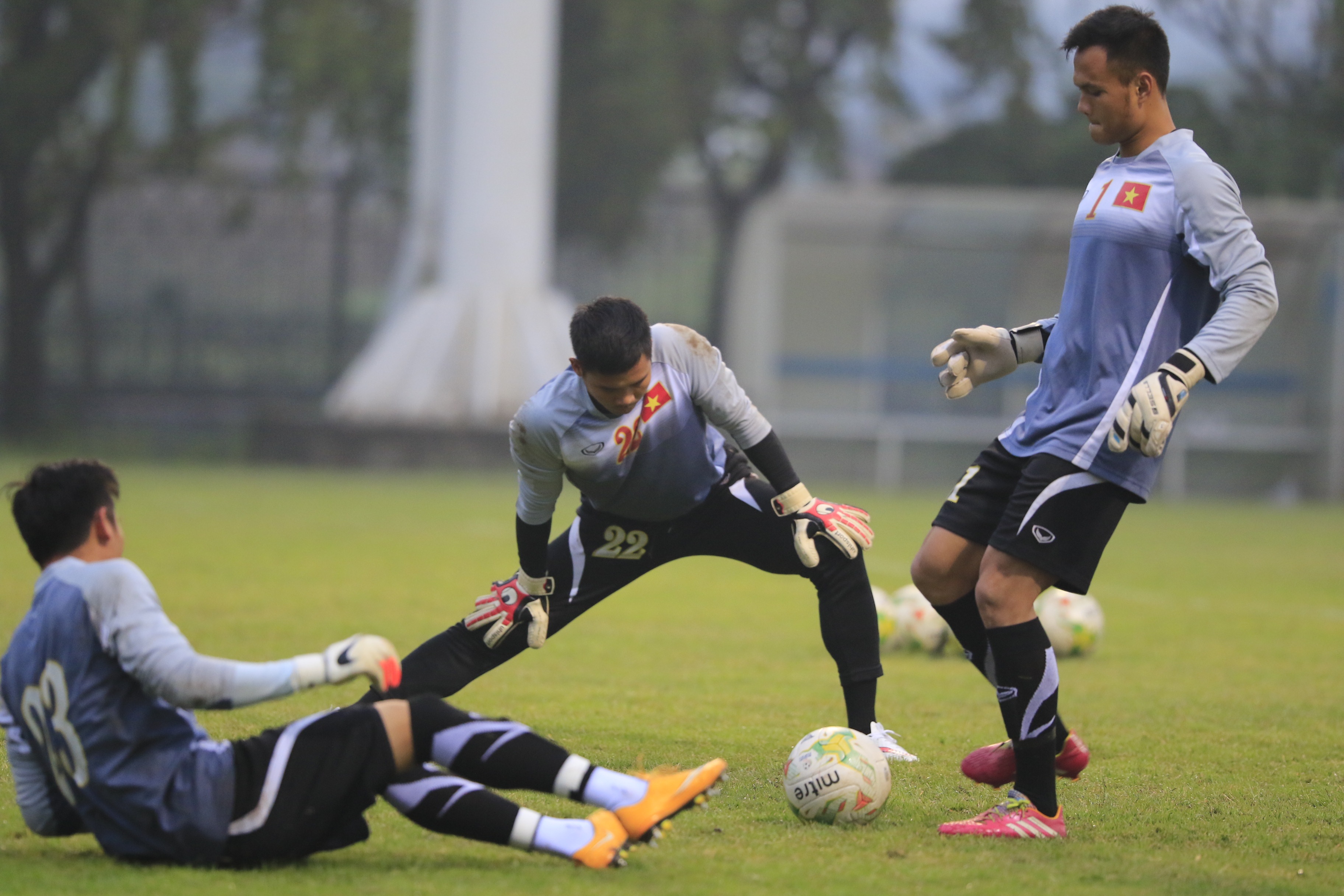 | Các học trò của HLV Miura có bài tập giữ thăng bằng trước khi bước vào bài tập chiến thuật với bóng. Do là buổi tập kín nên phóng viên chỉ được phép ghi hình trong 15 phút khởi động đầu tiên của ĐTVN. 9h30' sáng mai (11/12), ĐTVN sẽ tiếp tục có buổi tập nhẹ trước trận bán kết gặp Malaysia diễn ra vào lúc 19h trên SVĐ Mỹ Đình. |