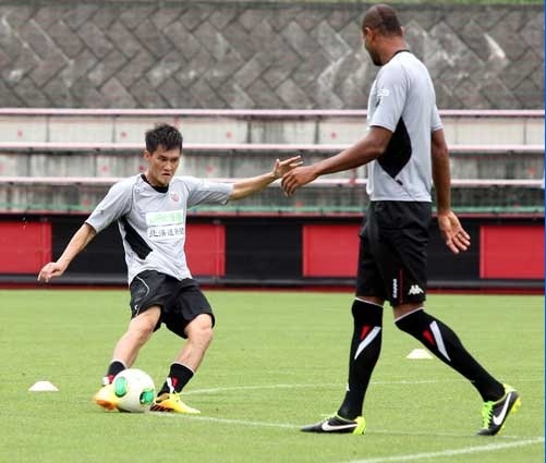 | Công Vinh tươi cười và hòa nhập nhanh cùng các đồng đội. |