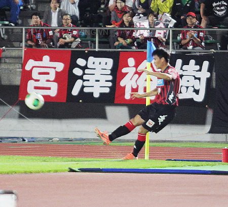 | Pha đá phạt góc có điểm rơi của Công Vinh tạo điều kiện thuận lợi cho đồng đội ghi bàn ấn định chiến thắng 3-0 cho Consadole Sapporo. |