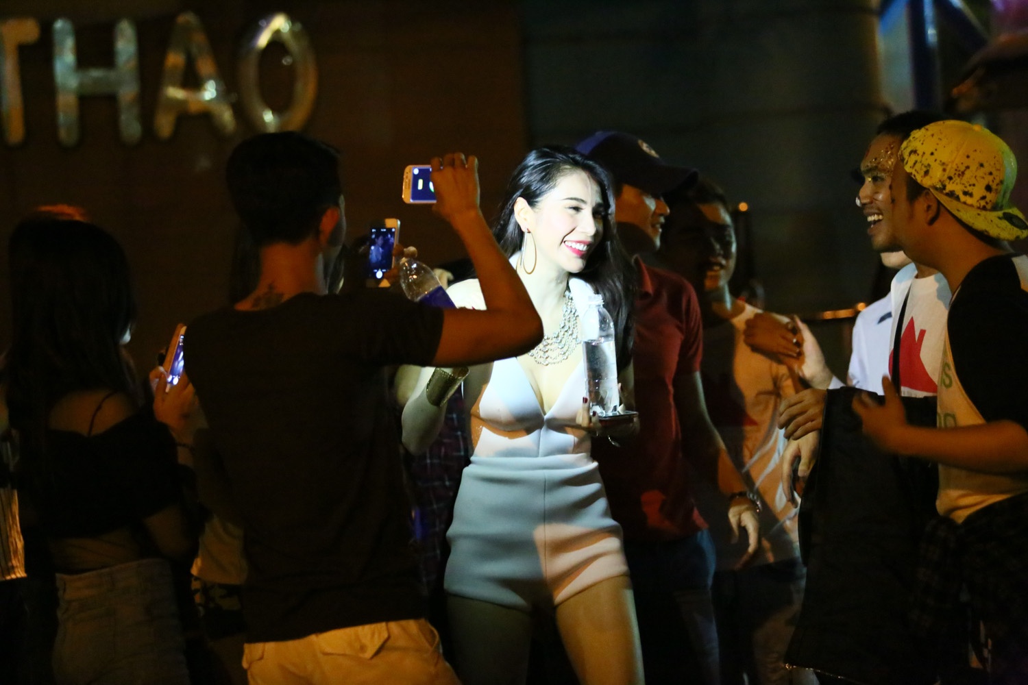 Khoảng sau 0h sáng 14/7, Thủy Tiên được chồng là cầu thủ Công Vinh đưa đón đến điểm biểu diễn chương trình cổ động World Cup tại nhà thi đấu Nguyễn Du, TP.HCM.
