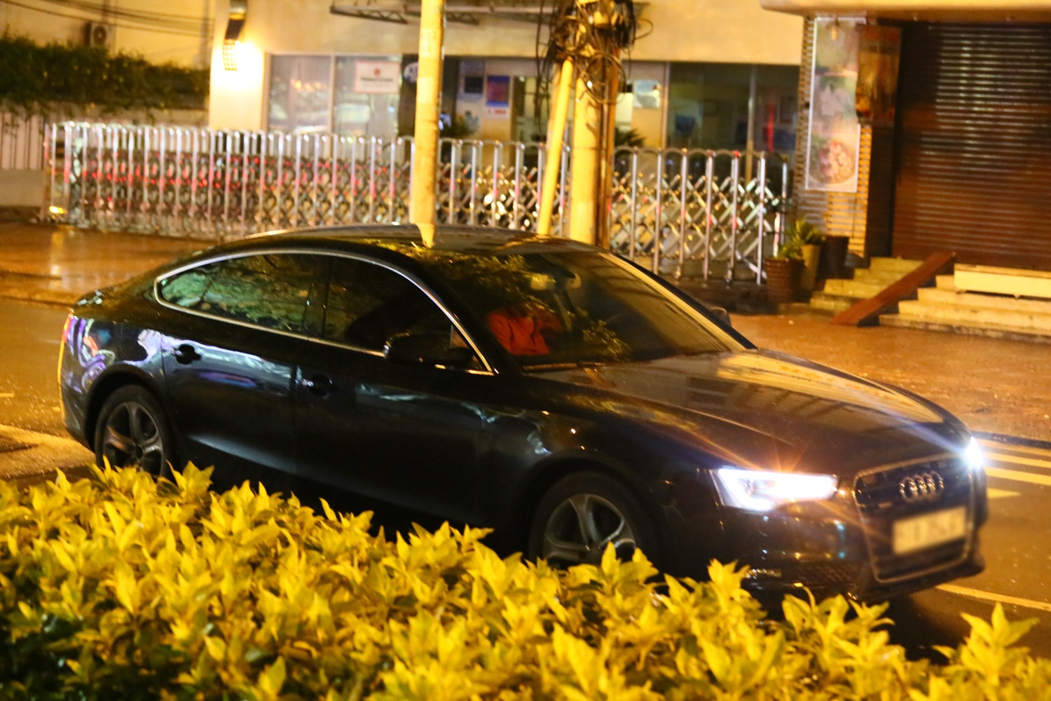 Chàng tiền đạo xứ Nghệ kiên nhẫn ngồi trong xe hơi đợi vợ hoàn tất việc biểu diễn rồi đón về nhà.
