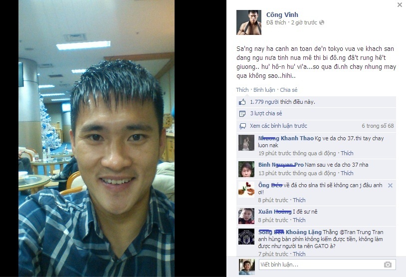 | Công Vinh sợ hãi khi lần đầu tiên gặp phải trận động đất khá lớn. |