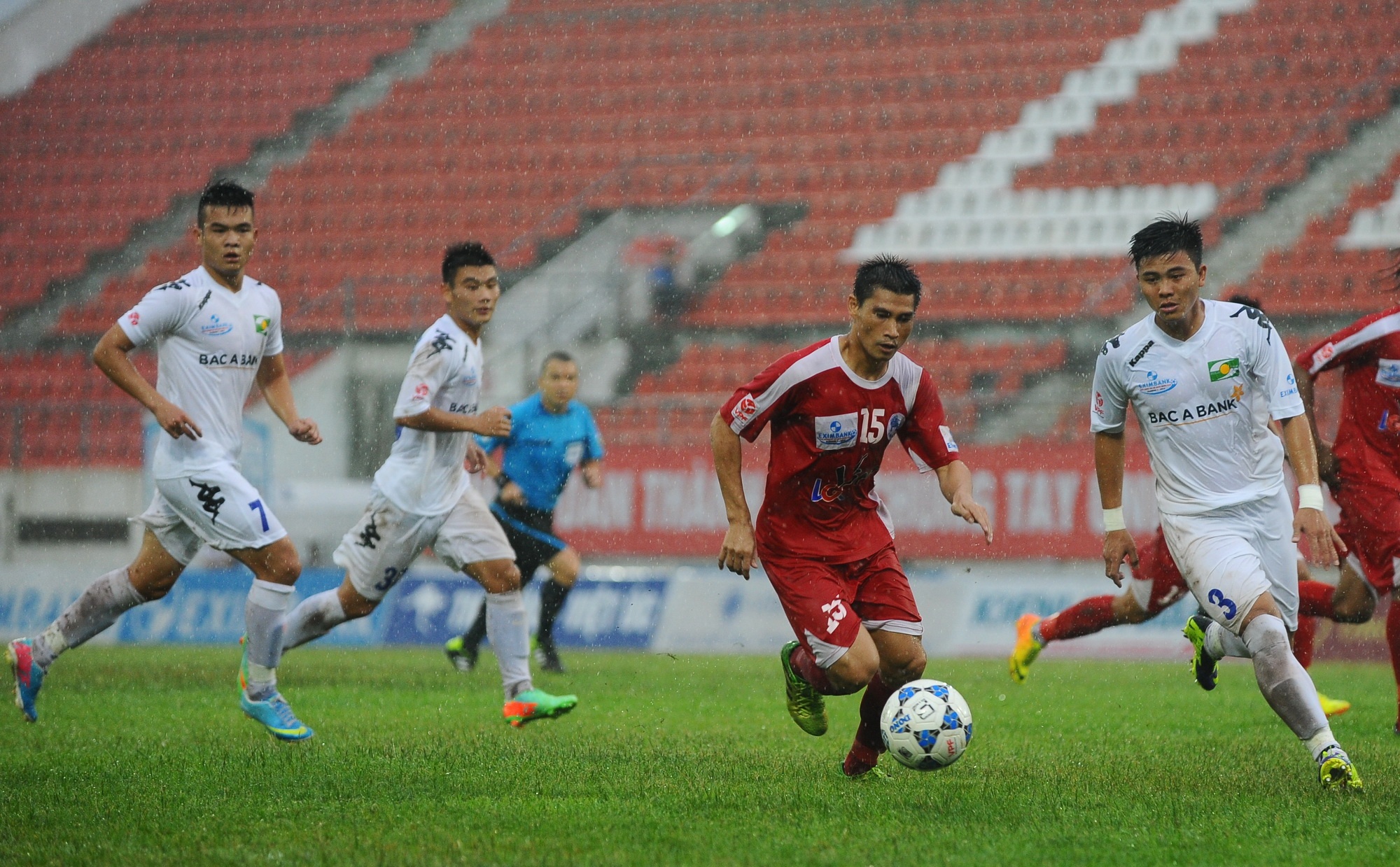 | Sau bàn thua, đội chủ nhà Hải Phòng tràn lên tấn công nhằm tìm bàn gỡ. Trời mưa nặng hạt ảnh hưởng không ít đến chất lượng chuyên môn của trận đấu. |
