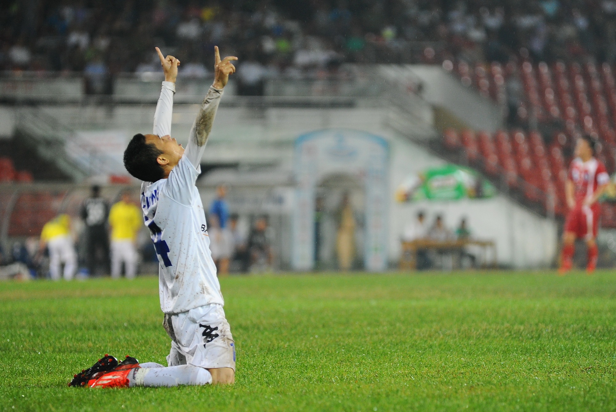 | Phút 71, những lỗ lực không biết mệt mỏi của đội chủ nhà cũng được đền đáp, tiền đạo Nguyễn Quang Hải có pha dứt điểm quyết đoán rút ngắn tỷ số xuống còn 1-2 cho CLB Hải Phòng. |