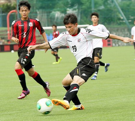 | Công Vinh dứt điểm dũng mãnh tung lưới U18 Sapporo. |