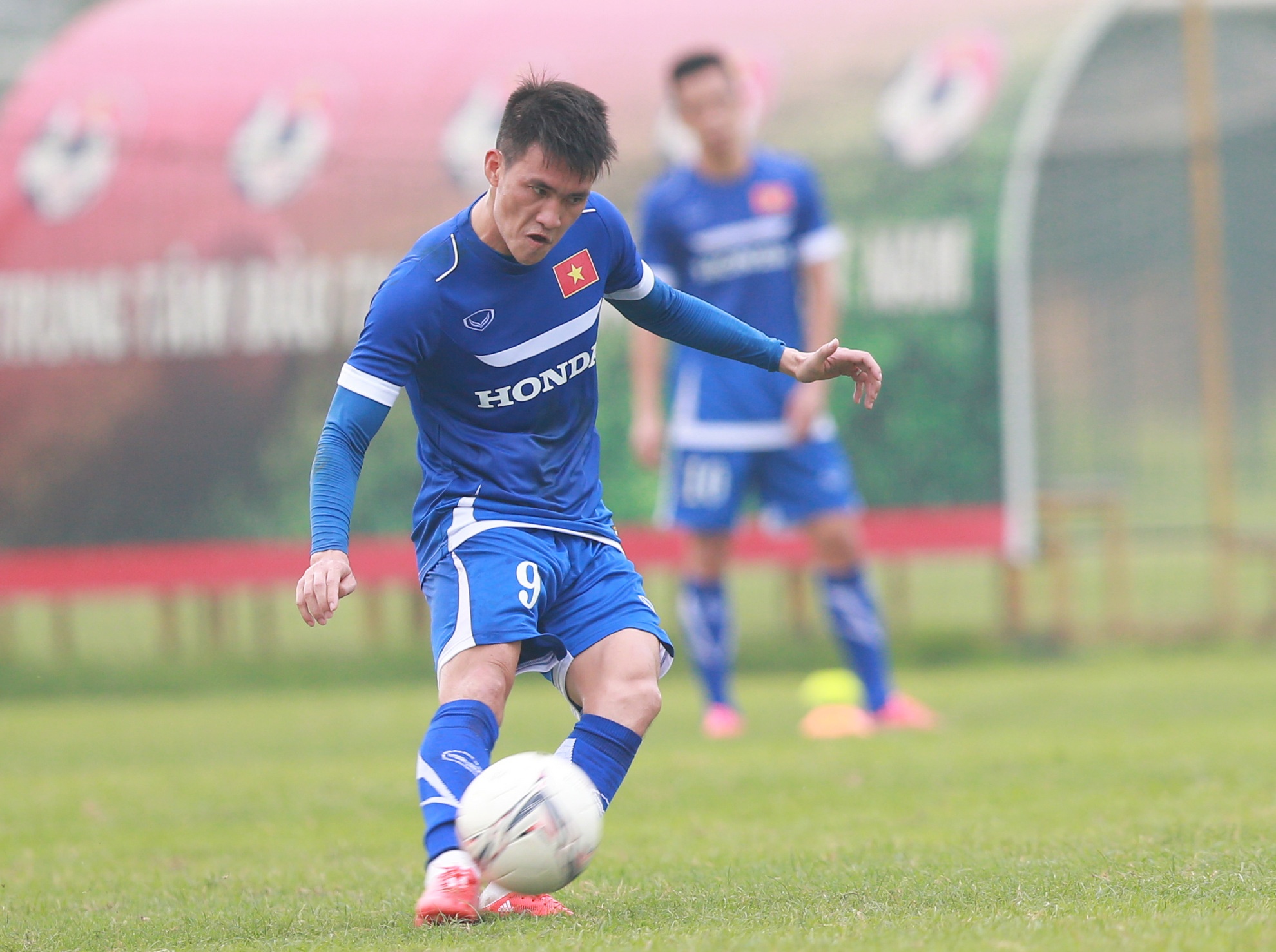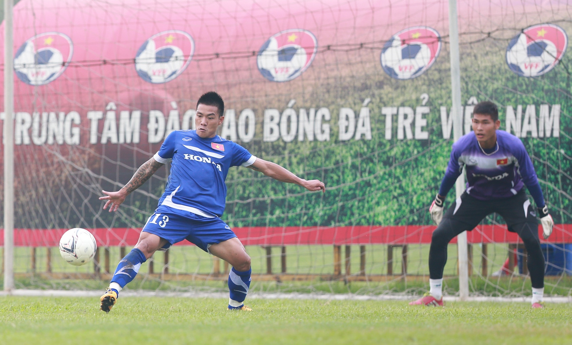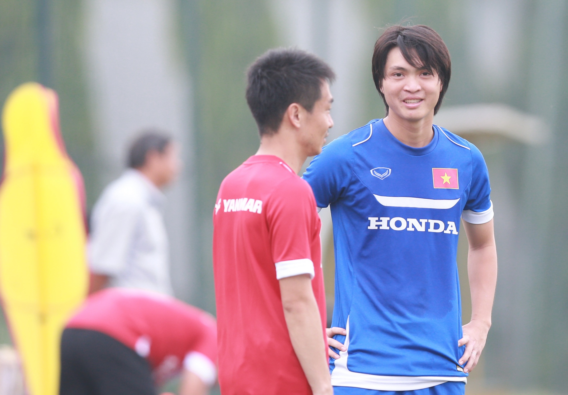 | Trước đó, Công Vinh cùng đồng đội có buổi tập nhẹ và rèn khả năng dứt điểm trong hơn 1 giờ đồng hồ. |