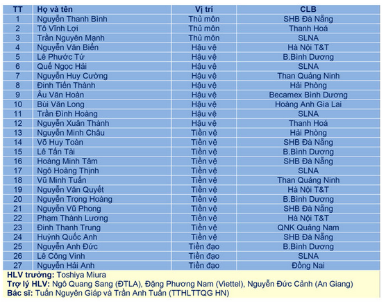 Danh sách tập trung đội tuyển Việt Nam