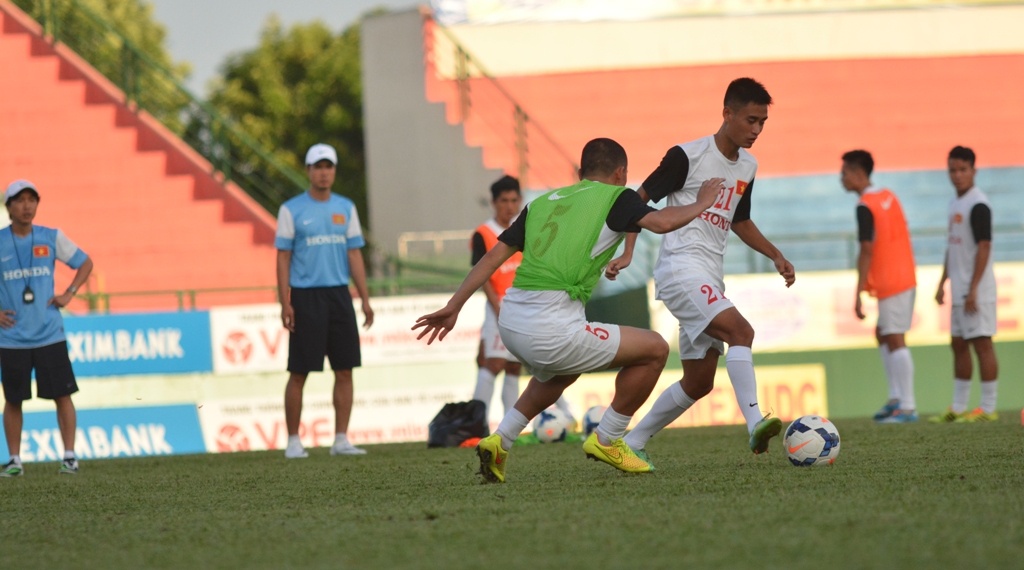 | Ông cho các hậu vệ tập bài 1 chống 2, 2 chống 2 vào chiều nay. Các cầu thủ còn lại được yêu cầu đứng xem. |