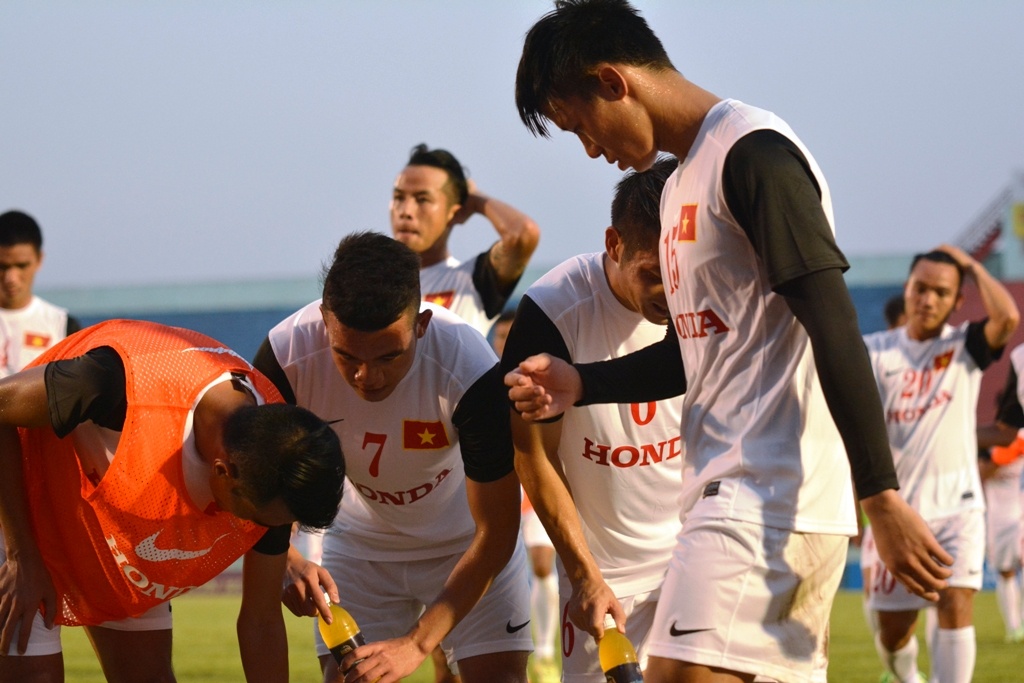 | Thời tiết tại Bình Dương khá oi bức nên HLV Miura đã kịp thời điều chỉnh giờ tập lên sớm 30 phút trong buổi sáng, bắt đầu từ ngày mai 27/6. |