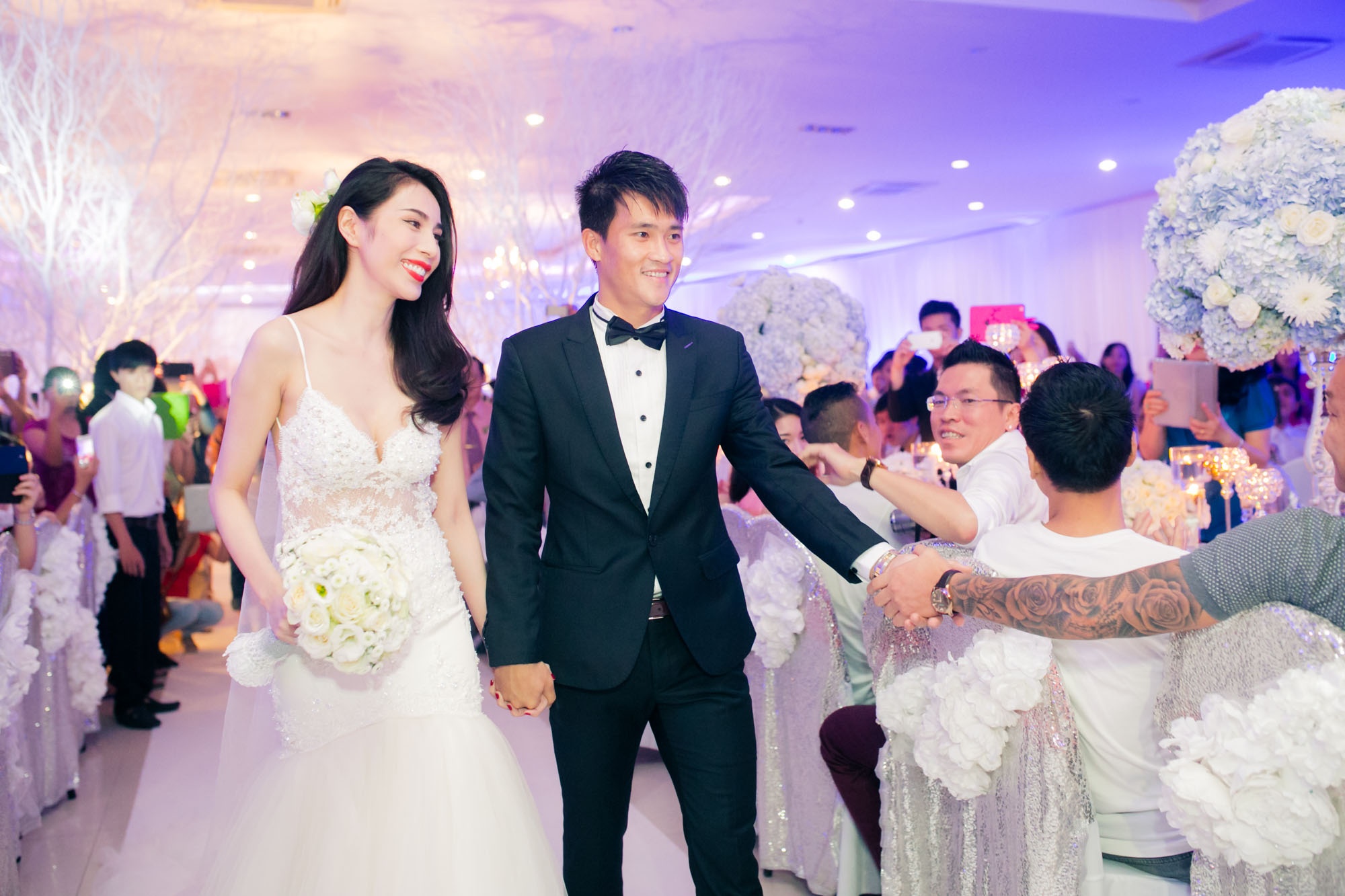 Công Vinh hôn say đắm Thủy Tiên trong tiệc cưới