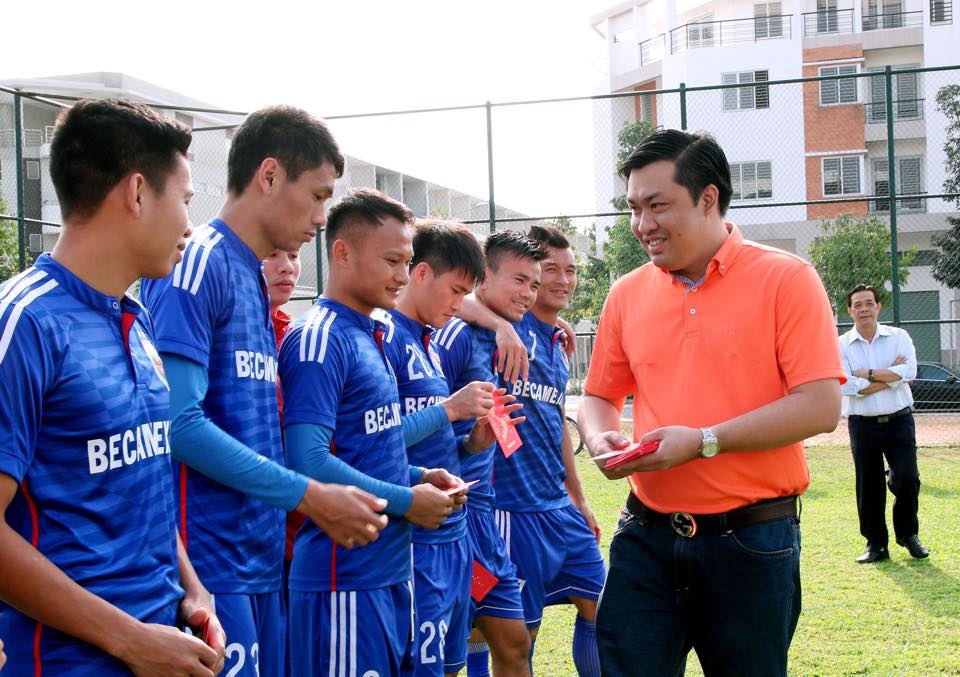 | Ông Cao Văn Chóng, Tổng giám đốc Công ty cổ phần bóng đá Bình Dương tặng bao lì xì may mắn cho Công Vinh cùng các đồng đội. Công Vinh đã có kỳ nghỉ Tết hạnh phúc bên gia đình trong căn biệt thự triệu đô mới xây tại TP HCM. |