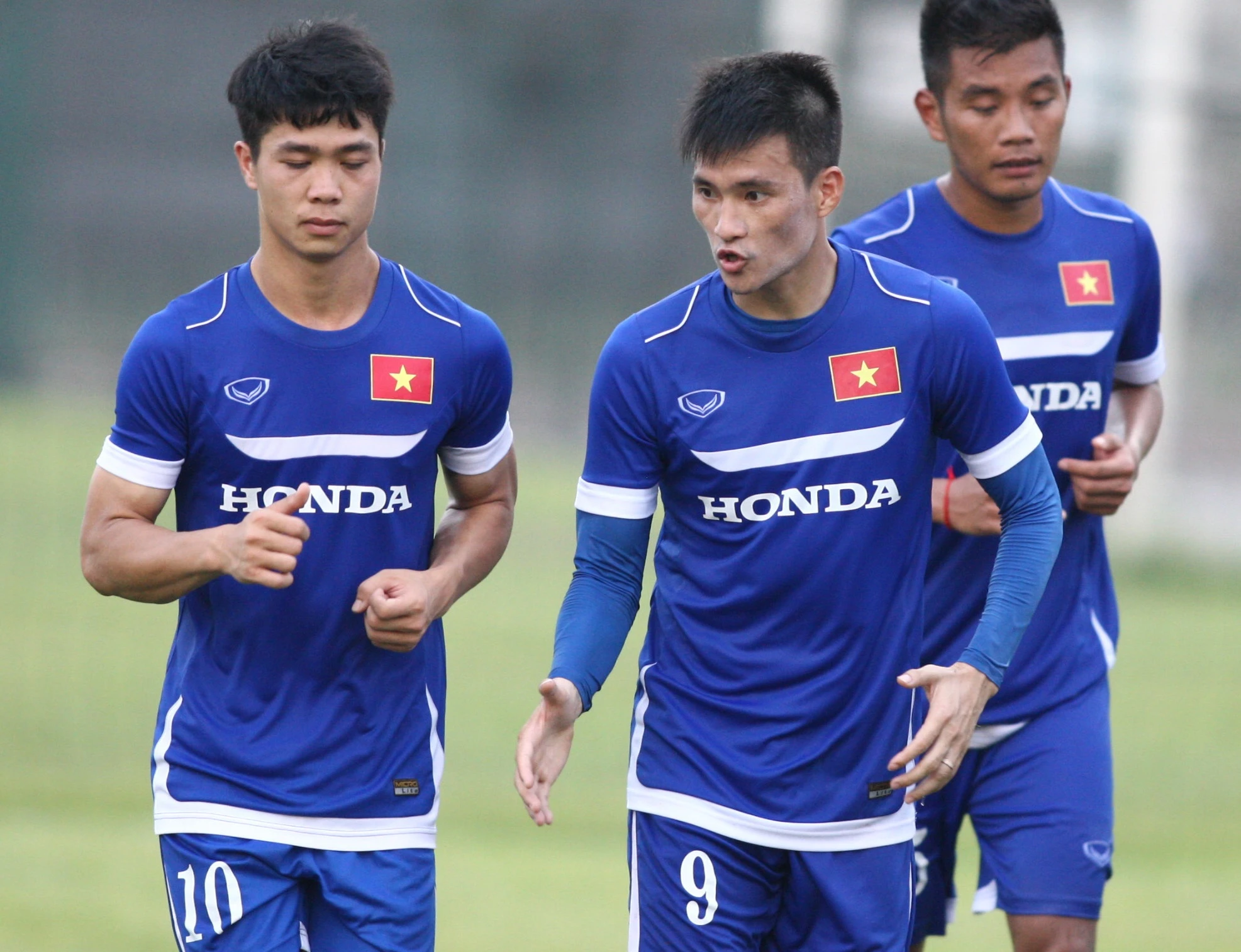 | Trong 15 phút chạy thả lỏng cuối buổi tập, đàn anh Lê Công Vinh nhiệt tình hỏi thăm và chỉ bảo để Công Phượng có thể hòa nhập tốt hơn khi lên tập cùng ĐT Việt Nam. Cả hai đều là người Nghệ An, cùng đá trên hàng công nên sớm tìm được tiếng nói chung. |