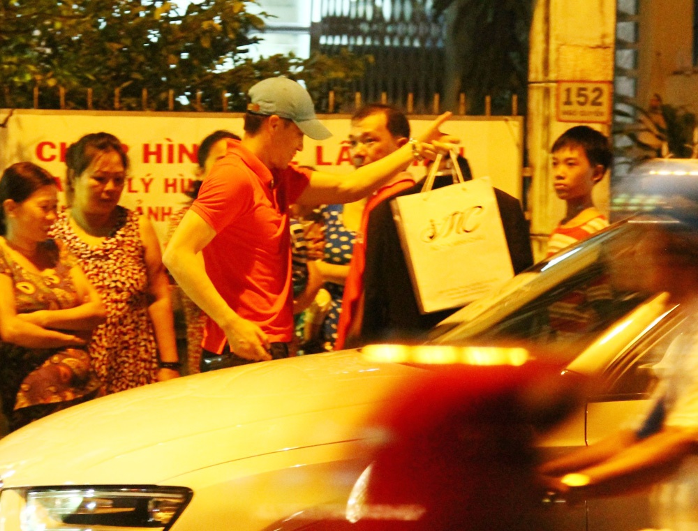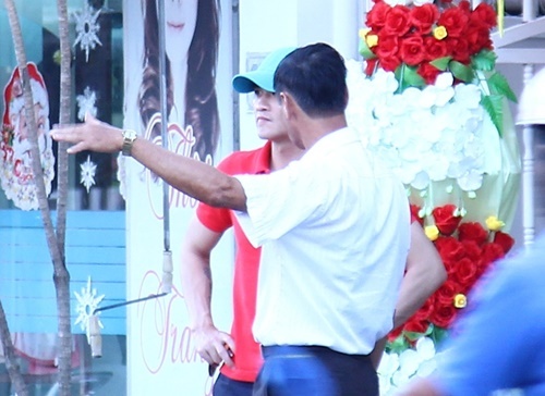 | Xuất hiện trước nhà riêng của cô dâu, Công Vinh tỏ ra khá căng thẳng khi vừa phải kiểm tra công tác chuẩn bị cho hôn lễ, vừa phải chạy về khách sạn để đón tiếp bố mẹ và họ hàng. Cầu thủ mang áo số 9 mặc giản dị, thoải mái với quần sooc, áo thun đúng phong cách của dân thể thao. |