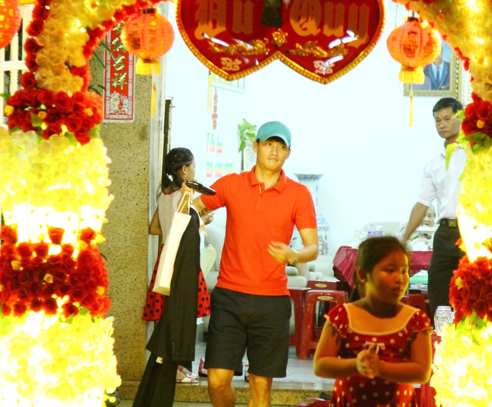 | Công Vinh vừa đi vừa nghe điện thoại liên tục. Vì bận cưới nên cầu thủ sinh năm 1985 cũng phải bỏ lỡ một trận đấu quan trọng của câu lạc bộ Bình Dương. |