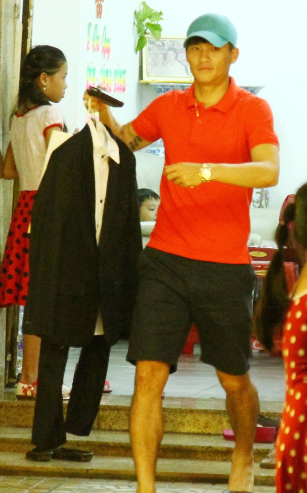 | Hiện tại, khâu chuẩn bị cho đám cưới đã ổn định nên tiền đạo xứ Nghệ yên tâm lấy bộ vest từ nhà Thủy Tiên mang về khách sạn ngủ cùng gia đình. |