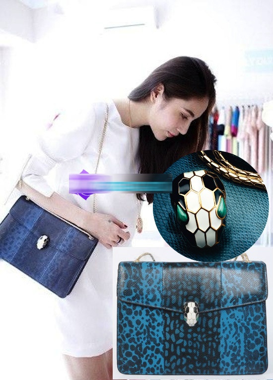 | Thêm một chiếc túi Serpenti khác màu, với phần khoá hình đầu rắn vô cùng tinh xảo. |