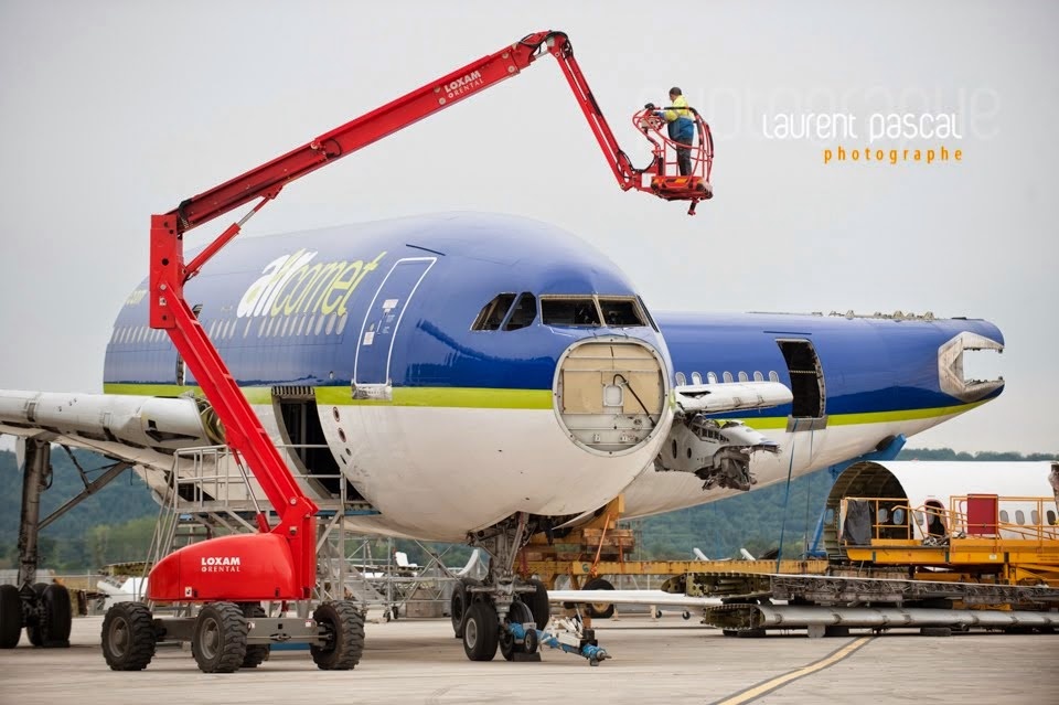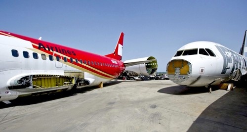Đại công xưởng hóa kiếp máy bay nằm tại Thung lũng hàng không vũ trụ, một cụm từ chuyên chỉ khu vực có các công ty hoạt động trong lĩnh vực này gần thị trấn Tarbes, miền nam nước Pháp. Sebastien Medan, người đứng đầu công ty cho biết: “Chúng tôi sẽ nhận những chiếc máy bay cũ và vòng đời của nó hoàn tất khi các công nhân lấy hết mọi vật liệu có thể tái sử dụng”. |