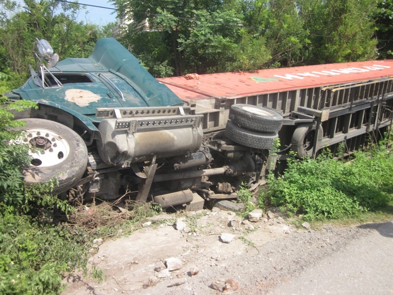 Vào khoảng 4h sáng ngày 14/8, một vụ tai nạn lật xe xảy ra trên quốc lộ 1A đoạn qua xã Nghi Long, huyện Nghi Lộc, Nghệ An.