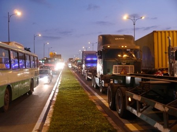 | Giao thông khu vực Cát Lái Ngã tư Thủ Đức tắt nghẽn suốt nhiều giờ liền. |
