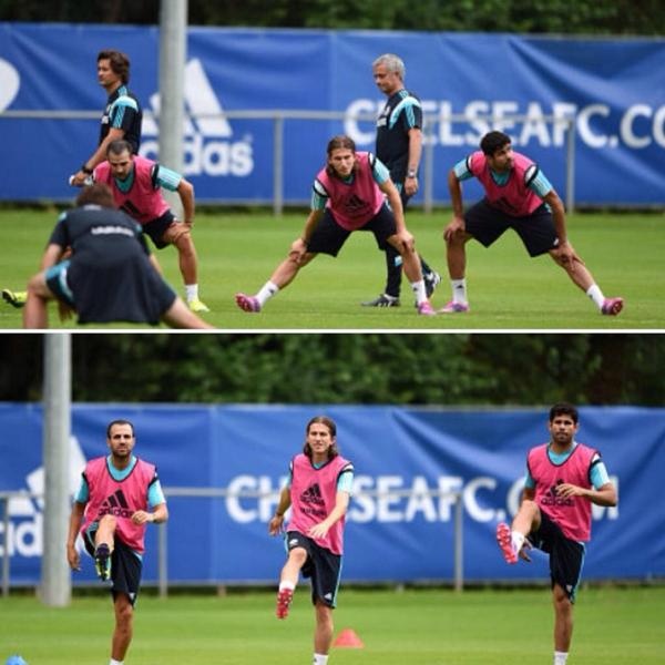 | Bộ ba tân binh của Chelsea tập luyện rất nghiêm túc. |
