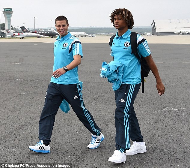 | Cesar Azpilicueta và Nathan Ake háo hức trên đường ra sân bay để sang Áo. |
